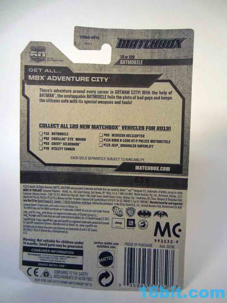 Mattel Matchbox Batmobile Die-Cast Metal VehicleI've been digging in the die-cast car aisles a lot lately, primarily to snag licensed character vehicles but also just to see how that half of the toy collecting world lives. This resulted in a few surprise purchases, in that I didn't know that the 2013 Matchbox Batmobile even existed before I tripped over it at Target, because I wanted to see what all the kids were getting with Matchbox these days.