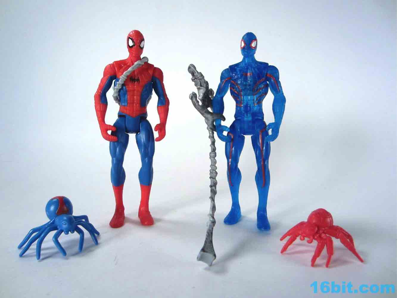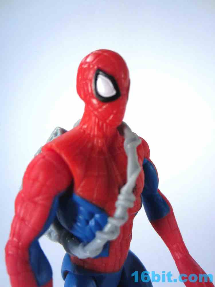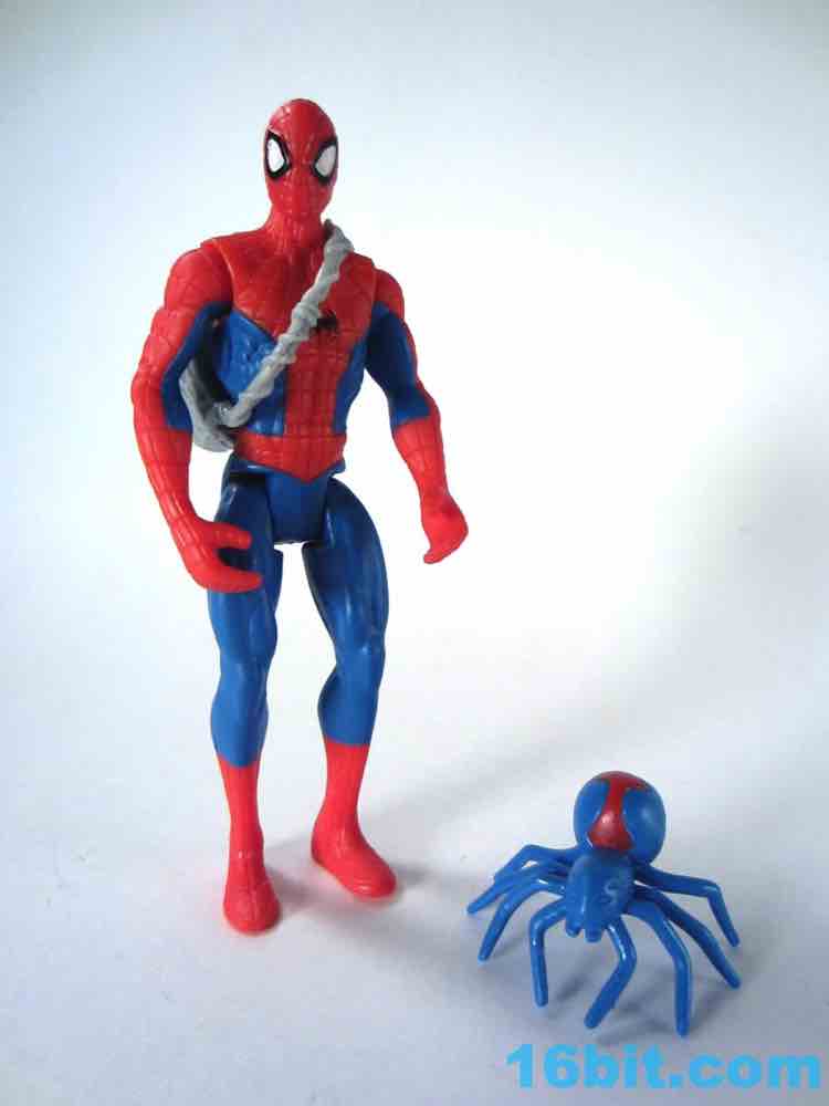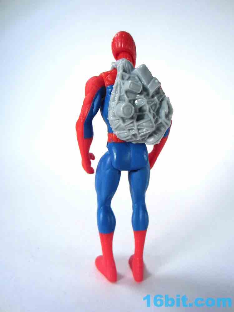 The big blue spider has a red marking on its back, while the other figure in this assortment had an unpainted arachnid. Oh, and it's a different mold - this is more or less a regular spider, while the red one packaged with blue Night Mission Spider-Man is a cyborg. Because why not. The web backpack accessory is a nifty holdover from Marvel Universe and fits quite nicely on the figure. Sadly the spider can't cling to the backpack or anything, so what you have is a plastic spider to chuck in the parts bin and a backpack you'll either leave on the figure or get mad at and throw at the spider.