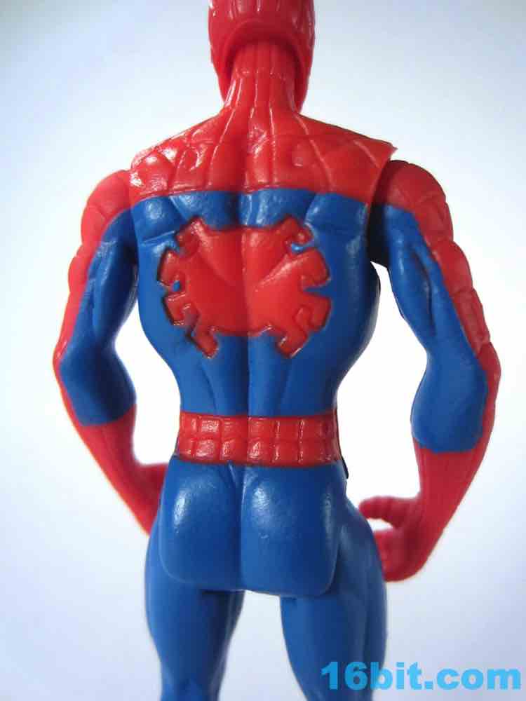 While the blue Night Mission figure is a wonderful example of what I assume to be a toy designer bashing their head against the desk to come up with something new, weird, and different, ol' red-and-blue is pretty paint by numbers. The design is delightfully cartoony with sculpted webbing over his red outfit segments, the panel lines going unpainted. A black spider appears on his chest, and he has big, friendly eyes with a black outline on his head. For the toy dorks out there, it's very much like getting an Alpha Phase Outer Space Men figure, and then the regular one. Except in this case, you've seen thousands of regular ones by now.