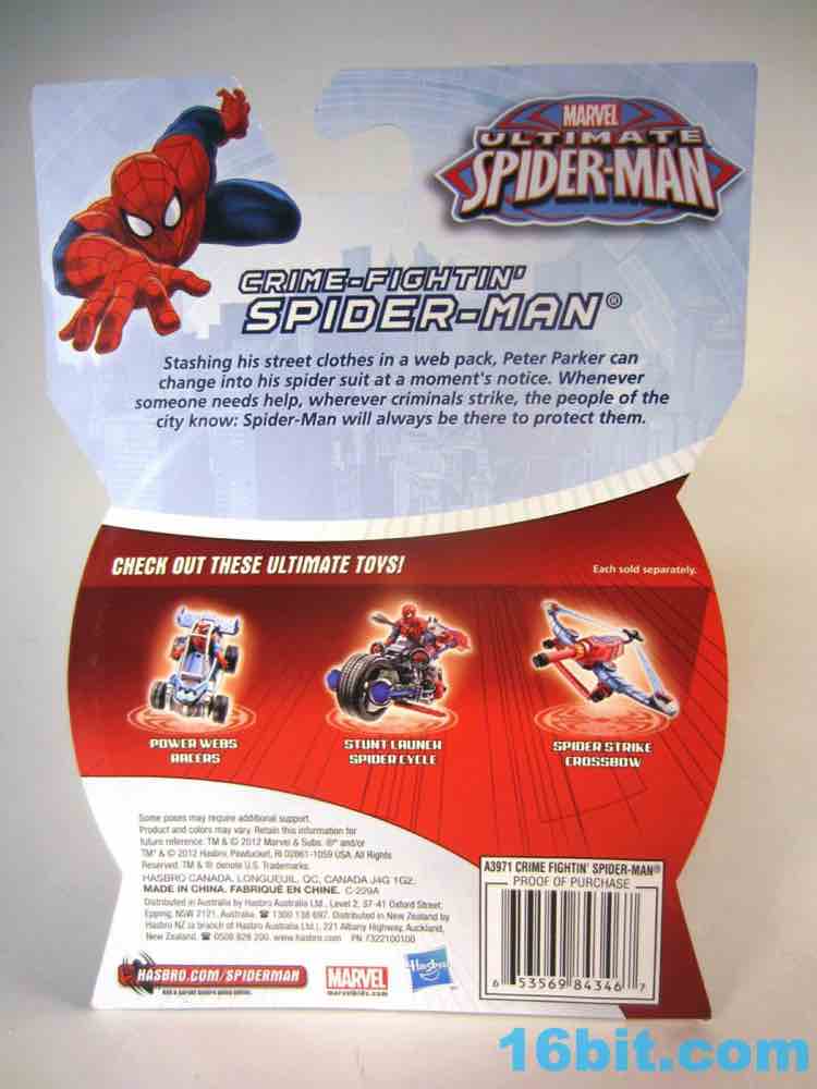 Its appeal is that it's cheap. Hasbro, by 2013, started to push for a cheaper action figure program as its normal collector/kid fare had inched up to a minimum of $9 per figure with most scraping $10. This guy is usually around $6 nowadays, but may be more at Toys R Us. He's the simplest Spider-Man figure in this size available today, with no action features and a pose that's more at home in 1988 than 2013.
