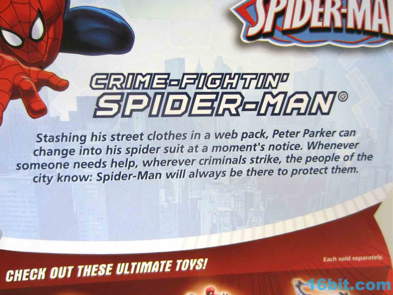 I'm pretty sure that every young boy is being issues some sort of red and blue webslinger figure at his fourth birthday, and the Crime Fightin' Spider-Man is as good of a choice as any. It started shipping earlier this year along with Night Mission Spider-Man, a clear blue figure that's so odd I saw it, shrugged it off, and it wormed its way into my head until I caved in and bought it - along with this normal Crime Fightin' version - a few months ago. The blue one got cracked open immediately in February while the red-and-blue one stayed in my "open this later" pile until the middle of June. It had the cooler accessory, but it wasn't what you would call overwhelmingly interesting. This same mold has been used for numerous comic book Spider-Man figures that came with jets or planes or other things you, the collector, would never buy.