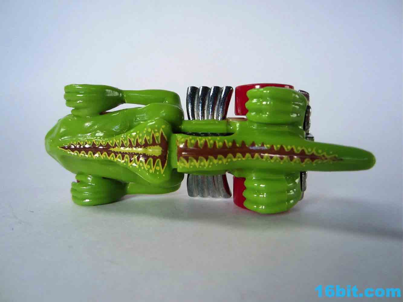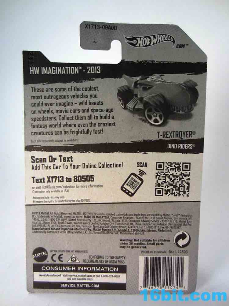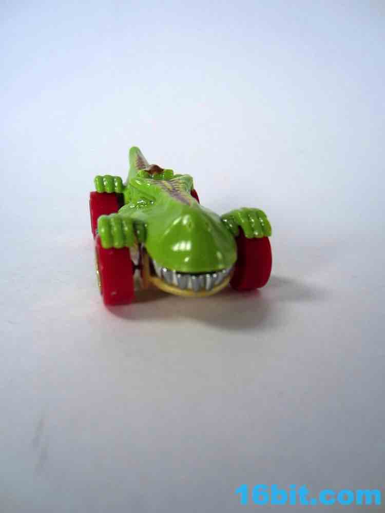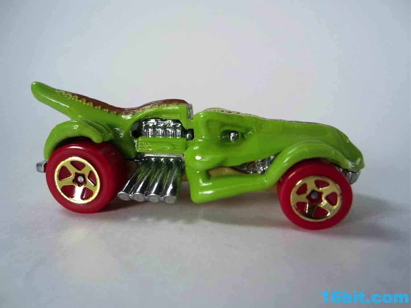From like 1984 to 2012, my Hot Wheels purchases were pretty much squarely in the licensed character categories. In 2013 I started peeking at the other designs, proving that there's nothing too stupidly entertaining. The T-Rextroyer started life around 2010 as a color-shifter car, and starting in 2012 got plunked down into the ubiquitous $1 assortments in multiple colors. In 2013 alone, there are two flavors up for grabs - this green one, and a red one. I bought it in a binge purchase earlier in the summer, it's all sort of a haze.