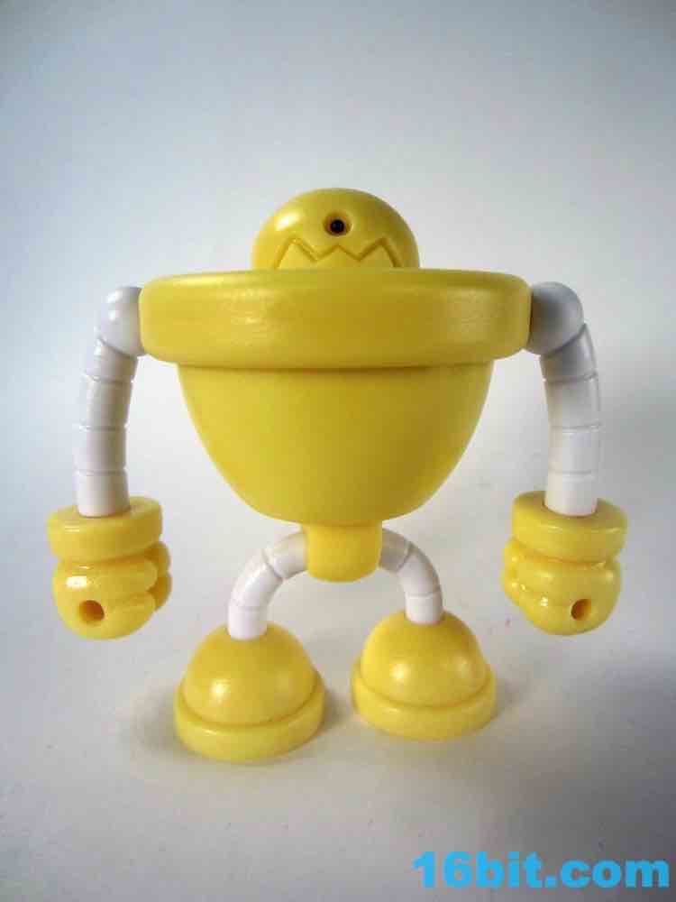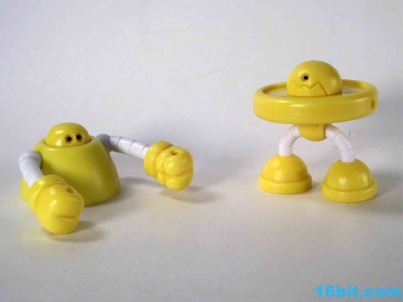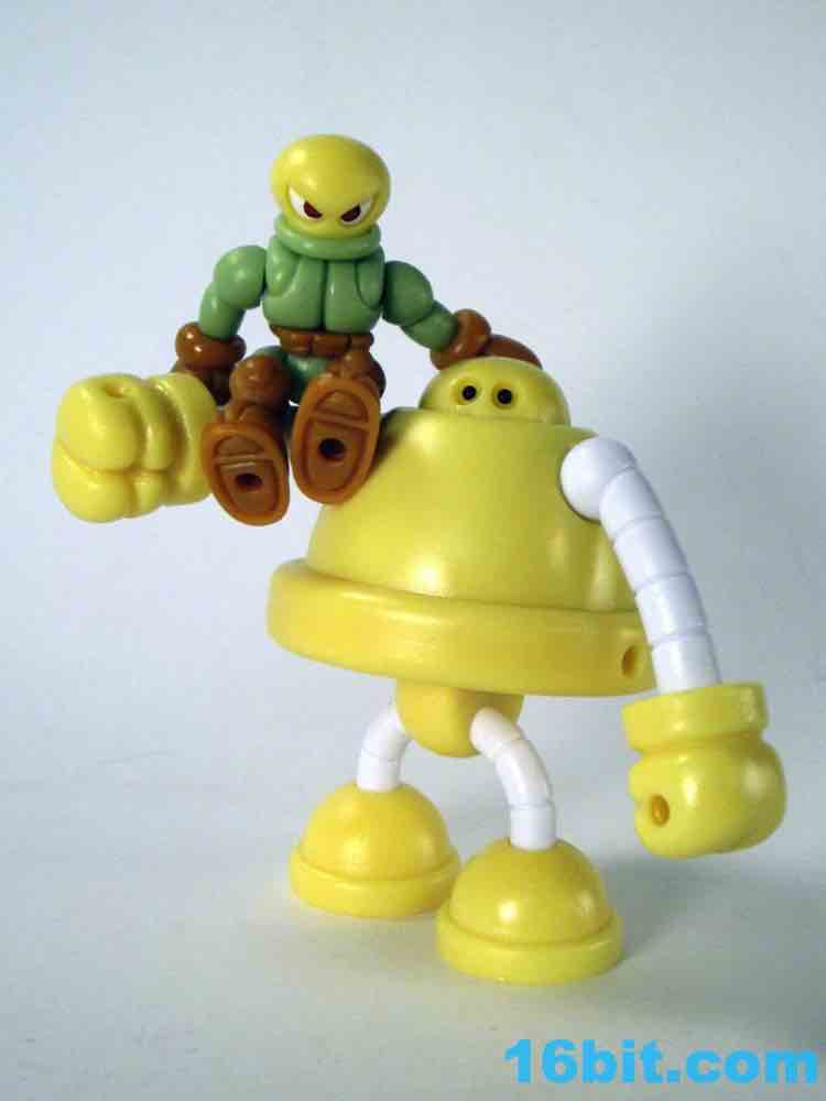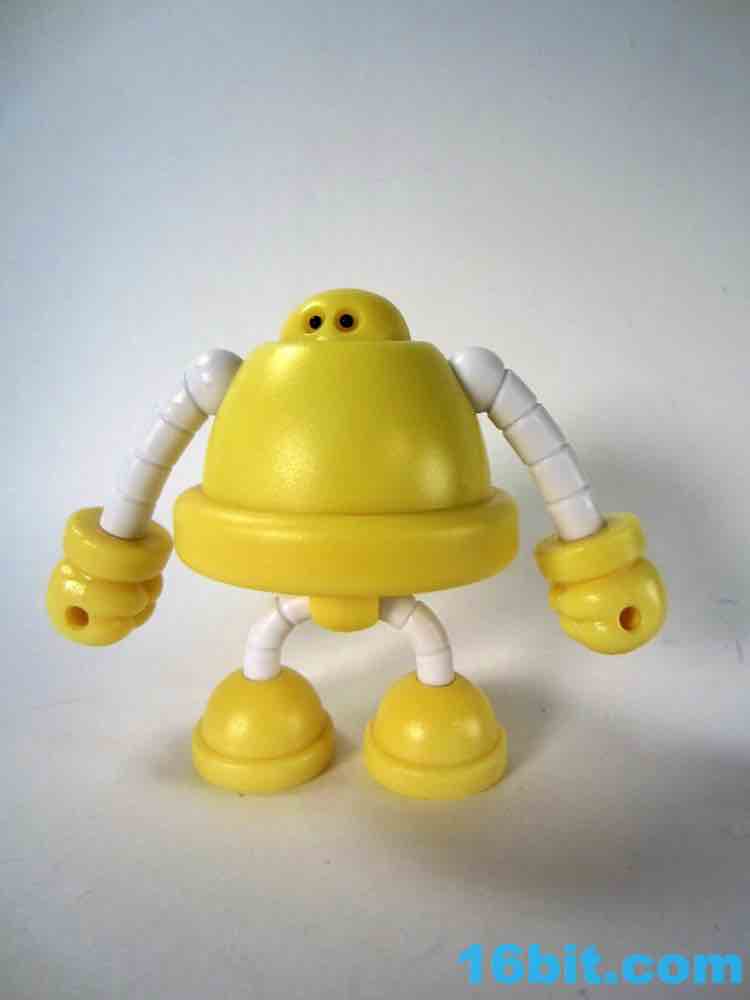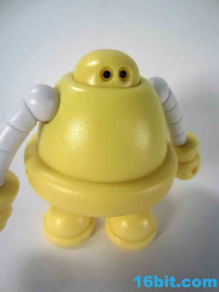 Onell Design Glyos MVR Standard Gobon Action FigureMade of 13 total parts, the pale yellow fellow has about 11 meaningful points of articulation and can be dismantled to reveal an alternate head with a reverse-torso build which looks significantly more evil. His normal head has two eyes on the front and a black single rectangular optic on the back, while the alternate, larger head has a single eye and a jagged mouth. This one looks good for customs, as the mouth itself is rarely painted on Onell Design releases of the mold.