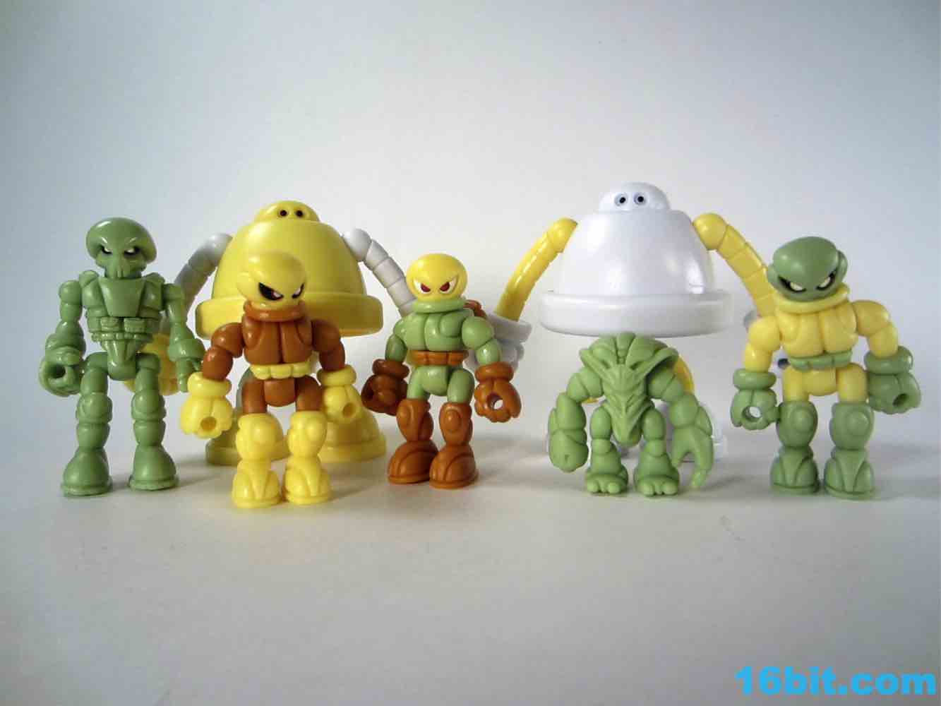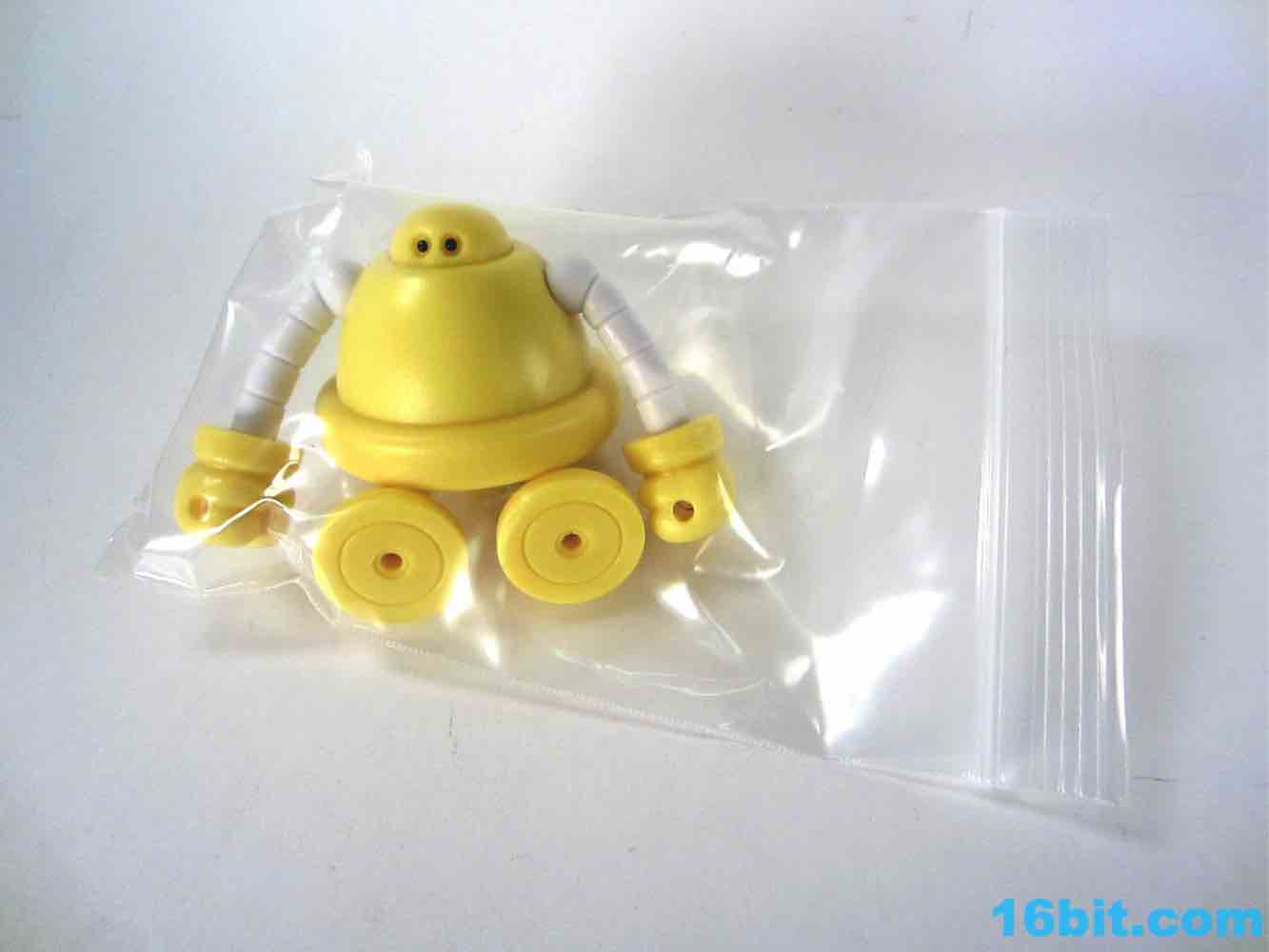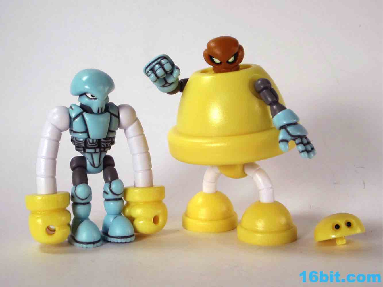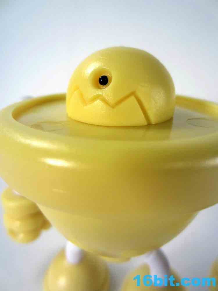 Onell Design Glyos MVR Standard Gobon Action FigureMade of 13 total parts, the pale yellow fellow has about 11 meaningful points of articulation and can be dismantled to reveal an alternate head with a reverse-torso build which looks significantly more evil. His normal head has two eyes on the front and a black single rectangular optic on the back, while the alternate, larger head has a single eye and a jagged mouth. This one looks good for customs, as the mouth itself is rarely painted on Onell Design releases of the mold.