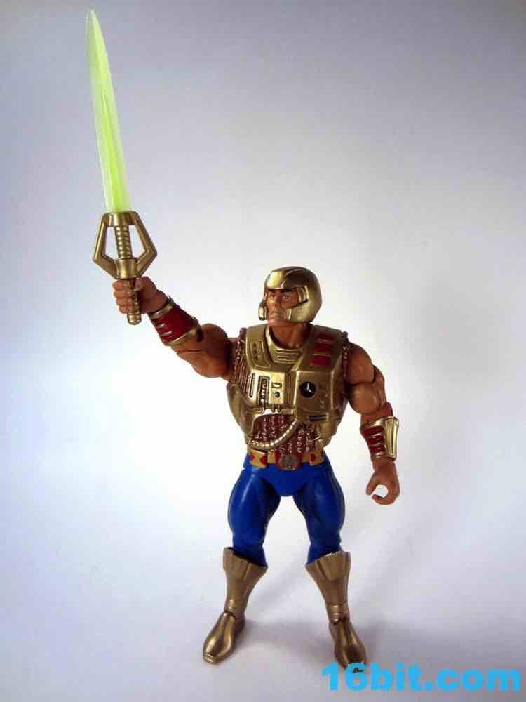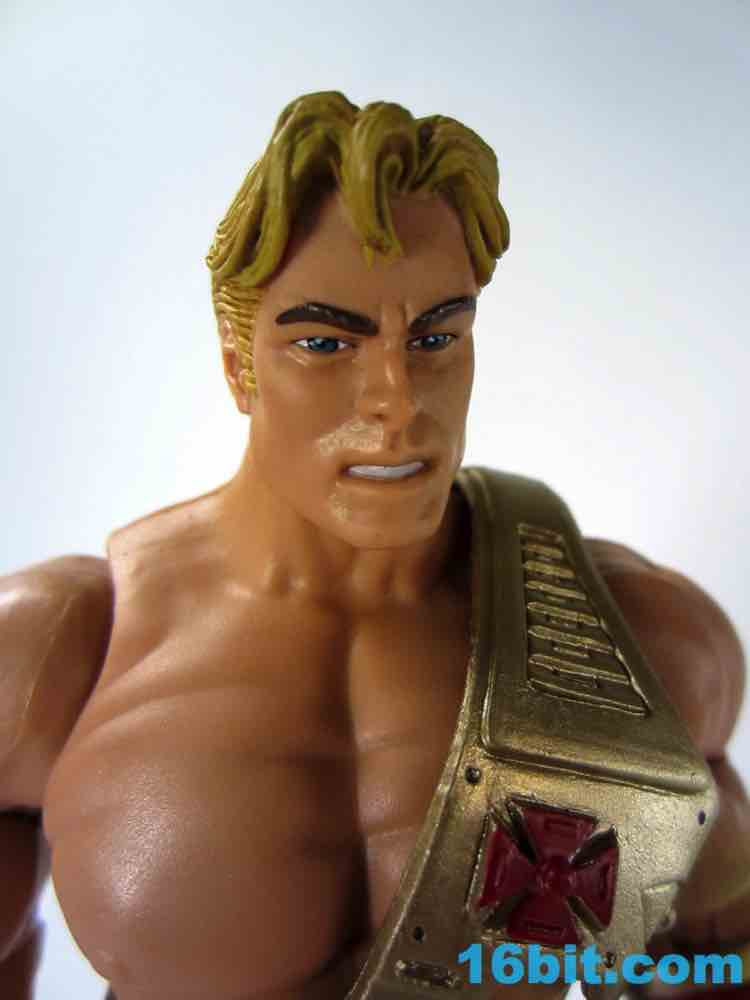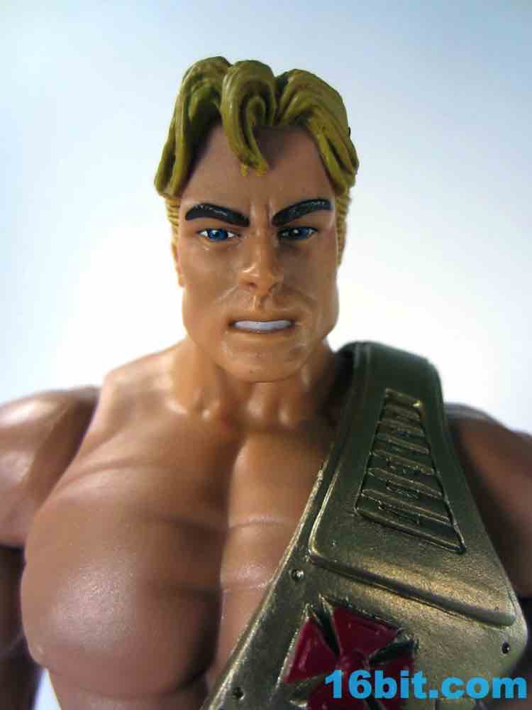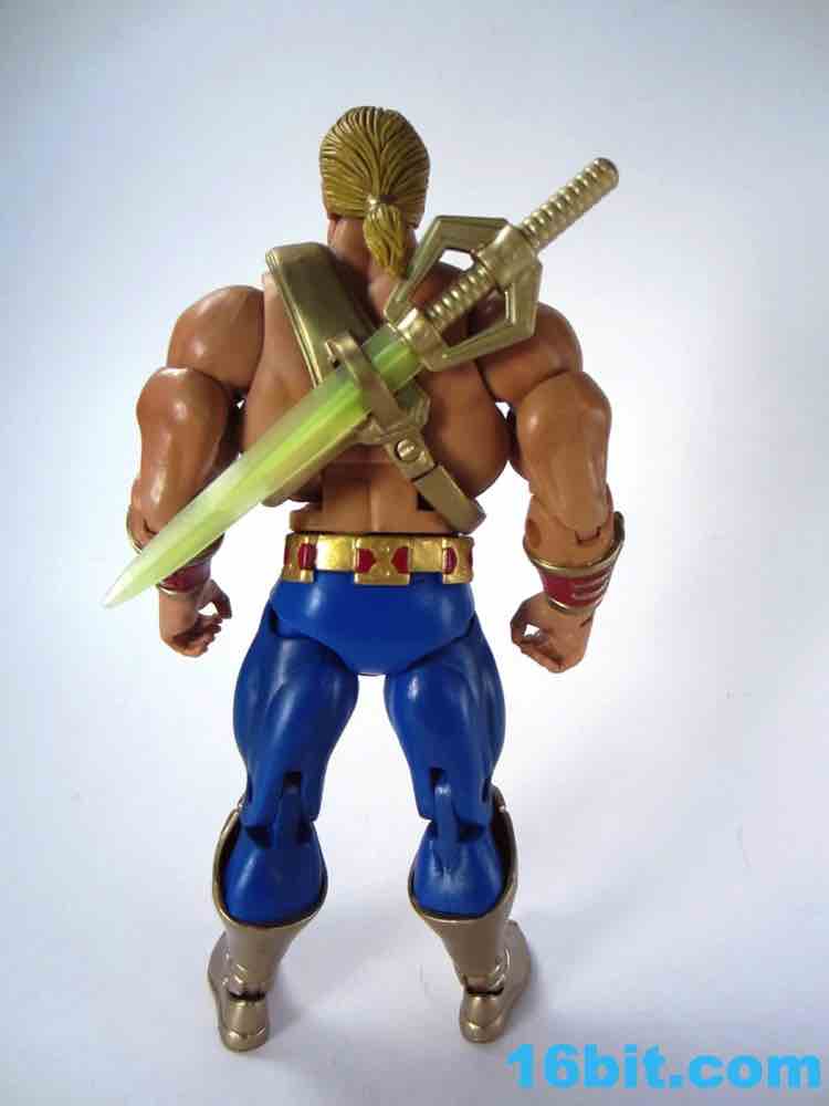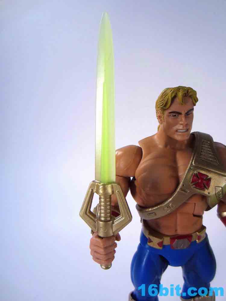 At about 7-inches tall, you mostly know what to expect. The figure is enhanced with bend-and-swivel wrists allowing him to point his sword and assume the "I Have the Power" pose that you want on your standard He-Man figures. On my sample all of the joints work great, and this upgraded He-Man is probably Mattel's best figure in terms of engineering and overall execution. The sculpt plays on the 1990 original by adding a classic red cross to his armor, adding some much-needed detail to the incredibly bland original design.
