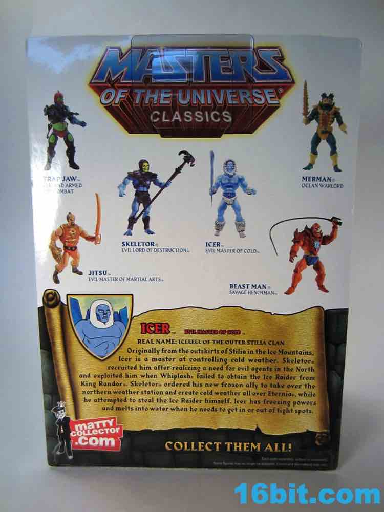 When Mattel started floating the idea of a special sub-Masters of the Universe Classics subscription, I doubt Icer was what fans were expecting. We've had few Filmation-based figures in the line so far (Eternos Palace Randor, Shadow Weaver, Octavia, Fang Man) and the results were consistently fun. Icer is a well-executed figure, but like a few of these guys the question is as much "Why?" as "Why not?"