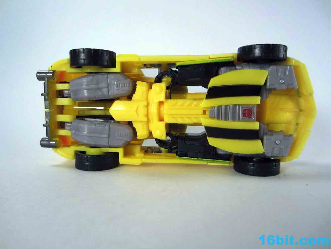 The vehicle mode is acceptable - it looks nice, and you can plug the stingers into it. The car mode seems a little tricky on my sample, because sometimes the robot chest plate drags on the ground in car mode. The wheels roll, but not terribly well - there's a higher amount of friction on the rear wheels. The front wheels spin quite nicely and are mounted on a metal axel, while the back wheels are just plugged into place and are functionally slightly better than being ornamental. (This has been happening a lot lately.) Still, for most adult buyers the car's ability to roll around on a table isn't the selling point.