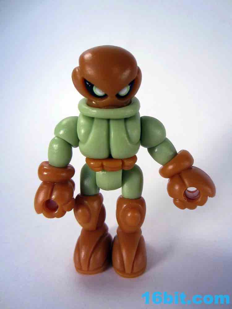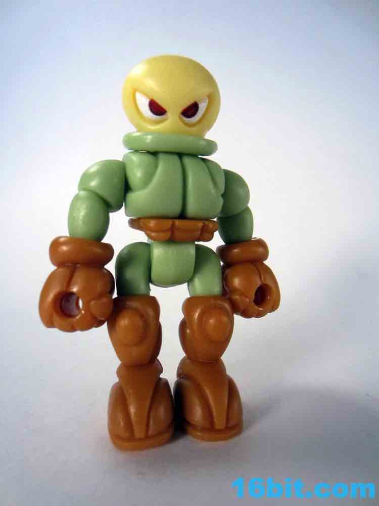 This figure includes 19 parts, and due to its unique design has a little more mobility than his Glyos ancestors. A clever swivel joint in the shoulder allows the arms to rotate in and out, adding to the amount of personality you can squeeze out of this mold. The figure's construction is similar to a shorter, tricked-out Pheyden with more options. For example, the ring at the base of Noboto's head is a removable part. The brown belt is also completely removable, and can be swiveled around. On the figure's back is a brown backpack that, while certainly a nice bonus, doesn't do much to add to the figure. It's there, and it probably added to the development a bit. I don't think I'd miss it if the part was dropped, as it's not quite as integral or versatile as the Armorvor backpack which doubles as a blaster. It doesn't hurt anything, though.