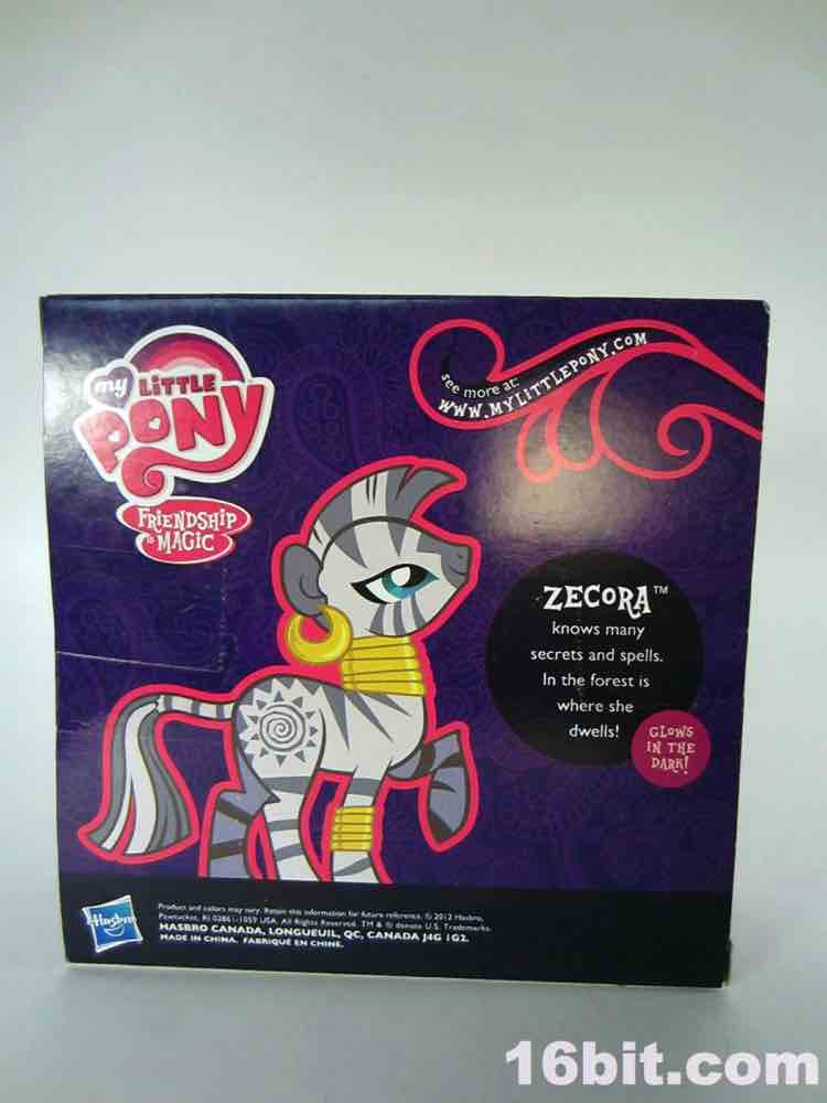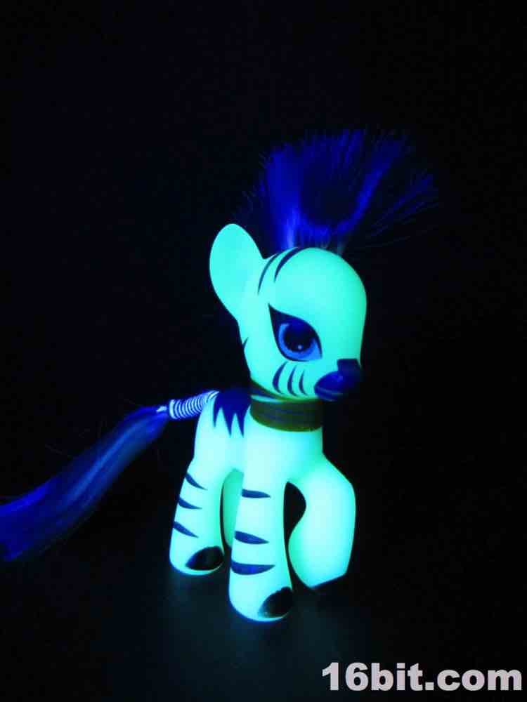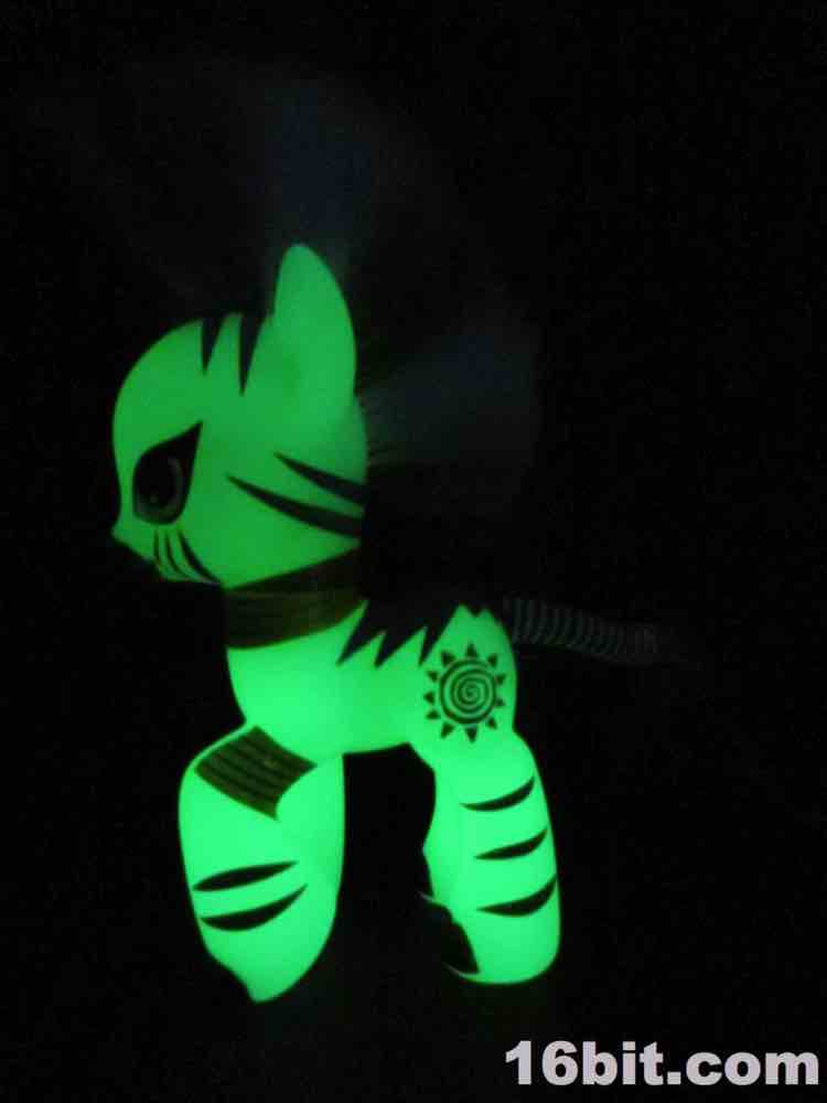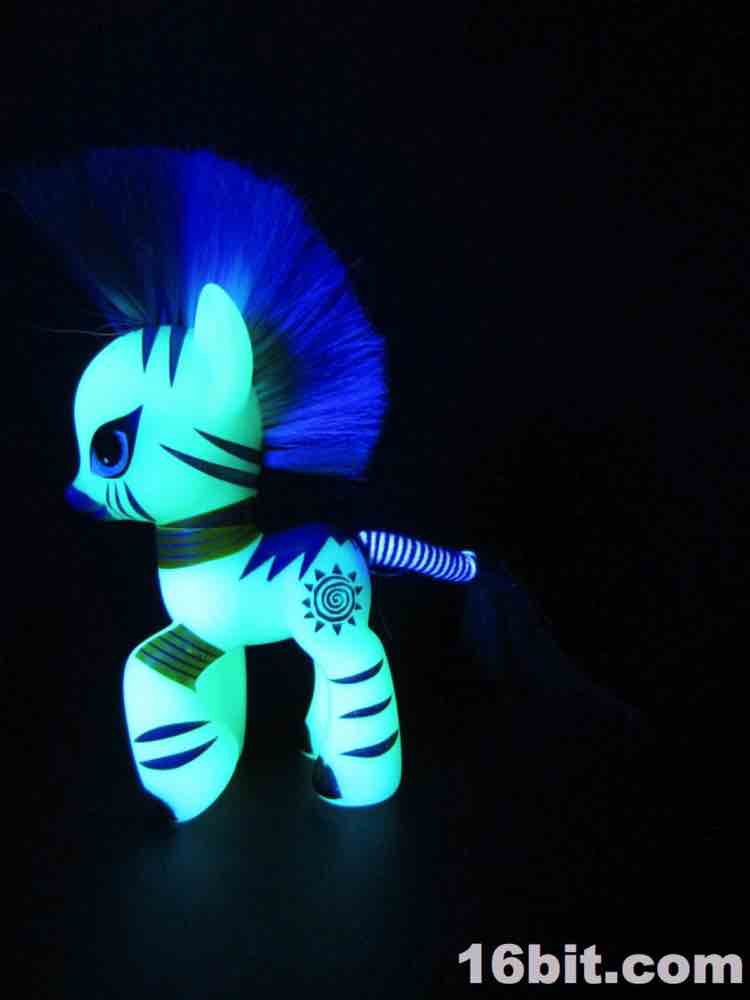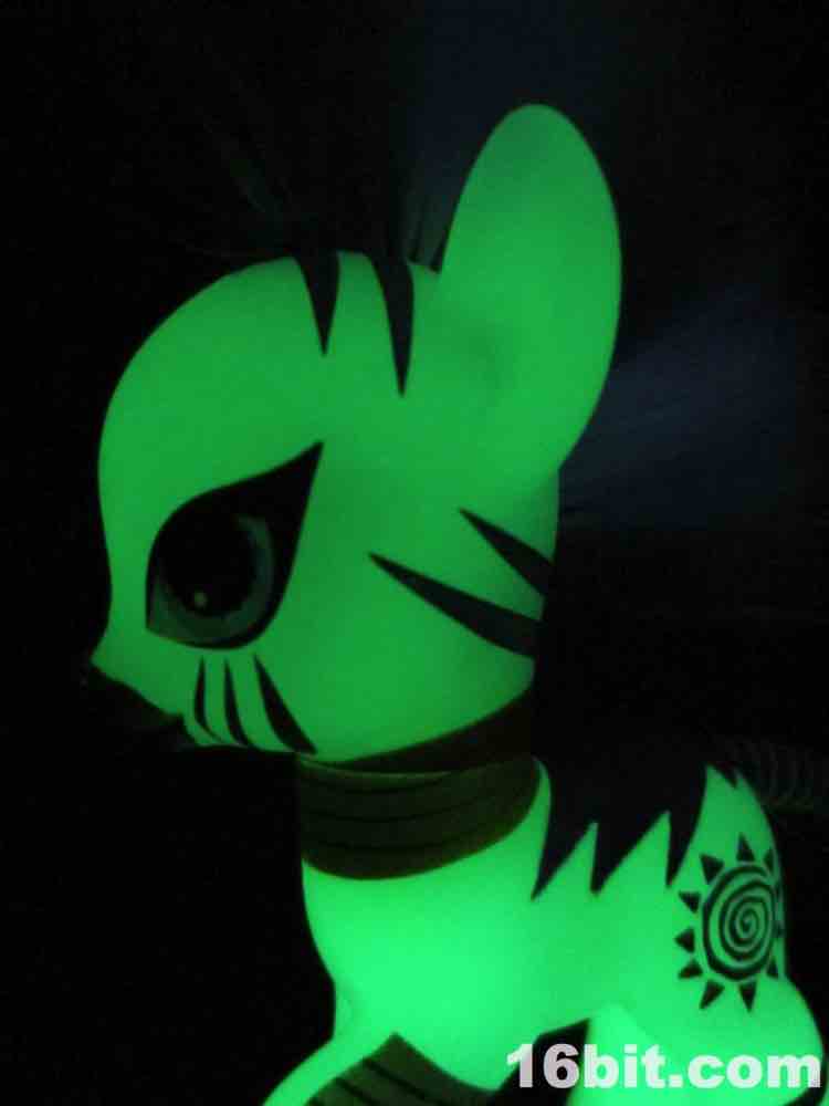 Fun story: as a kid I had a few My Little Pony toys, because as a child of the 1980s I asked for (and in some cases, got) a bunch of stuff. I haven't really seen any of Friendship Is Magic and I only got Zecora here in a goodie bag, which came from a cohort who had no real use for the bulk of the items in it. I figured I'd keep it, because glow in the dark is always yes. Hasbro rarely makes glow in the dark toys these days, and based on conversations I've had with them it seems to be something of an internal stigma - they see glowing toys as a bit of a cop-out, from a few random conversations I've had over the past fifteen years. It does not appear to be a championed feature.