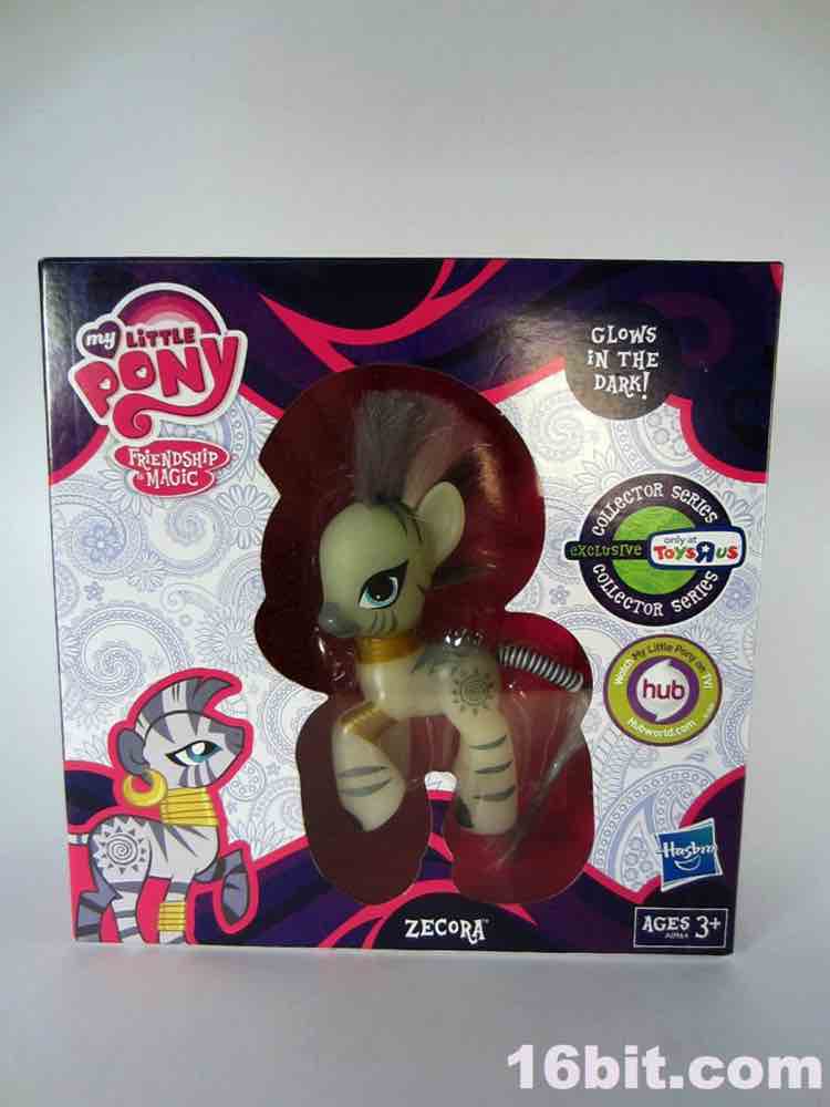 Zecora blew through the Entertainment Earth booth at Comic-Con (as that's how Toys R Us sells their exclusives at the show), and it seemed to do quite well after the show - it was pretty expensive on eBay until the price dropped after the show's buzz and heat finally wore off. The toy itself is nothing spectacular, but if you collect ponies or enjoy glowing toys I think it's right up your alley. With her considerable mane, the figure is about 4-inches tall - not counting the rooted hair, it's closer to 3-inches tall. Her only moving part is her head, which is a swivel joint at the neck.