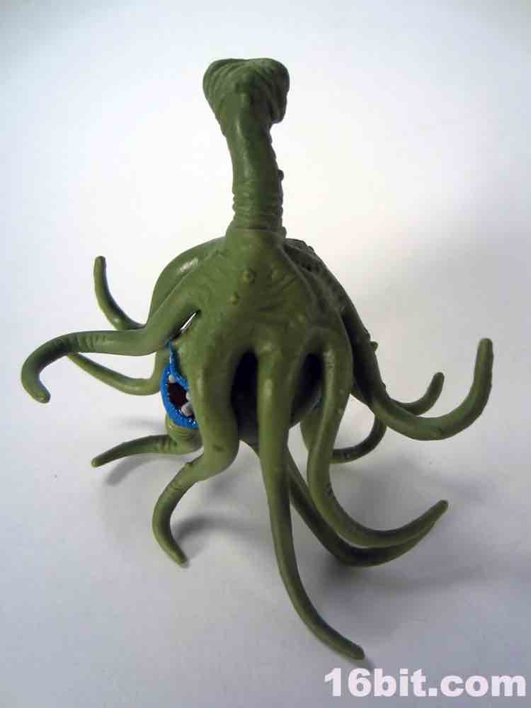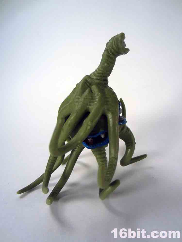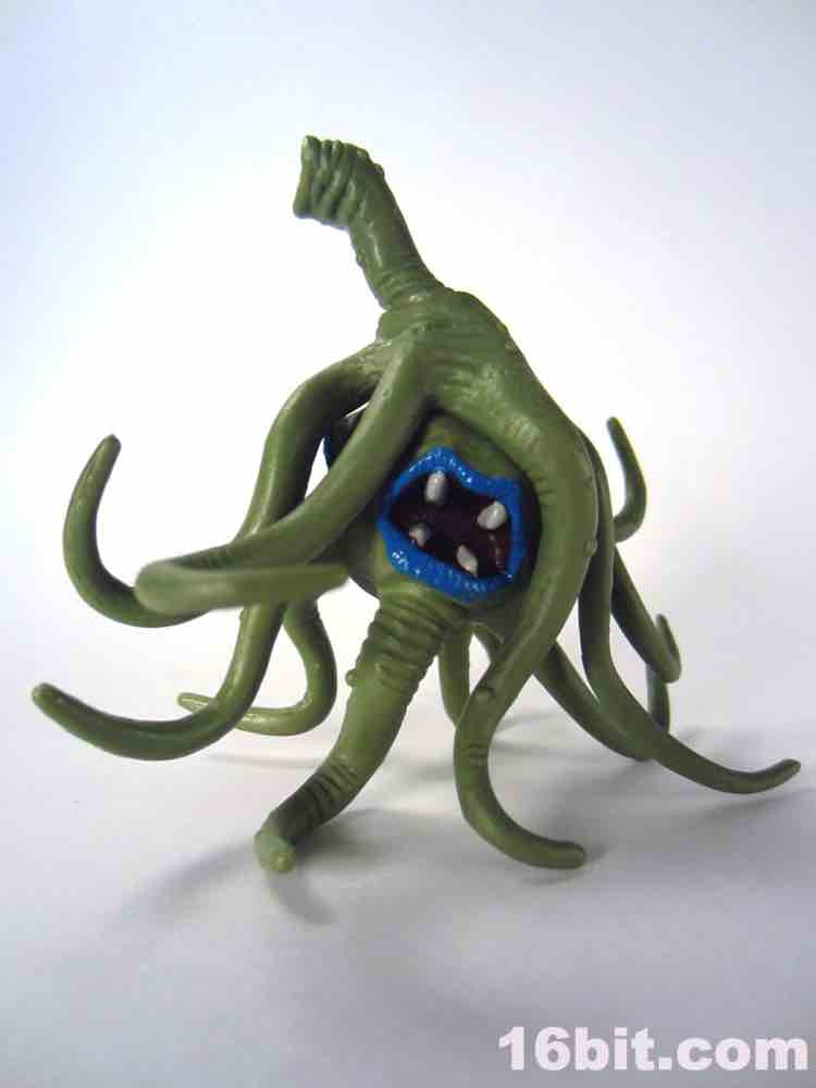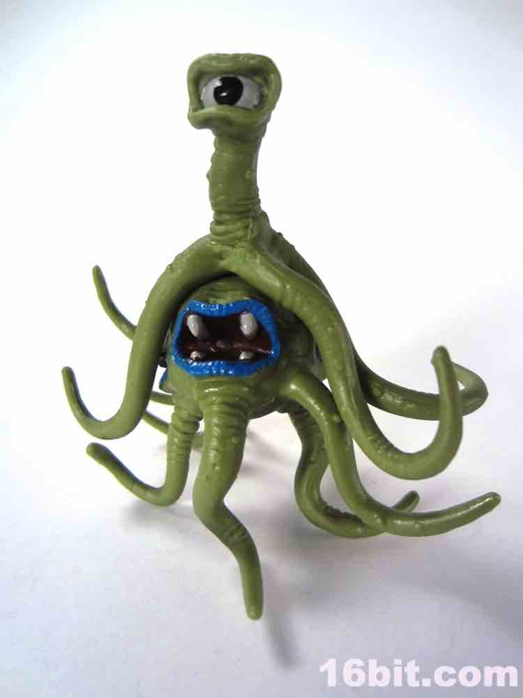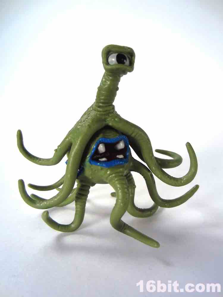 The awesome Darkling figure packaged with Shabooti is one of the highlights of this year's line in terms of quality. The sculpt is marvelous, it stands freely and requires no additional support. The eye is painted incredibly well, and the mouth has blue lips, white teeth, and a red interior. I'm sorry, did I say "the" mouth? I meant three mouths. This is where the rest of the paint budget went. This 2 1/2-inch tentacle monster is quite possibly the best-ever companion figure to a 1980s toy line, even if it came out in 2013. I remember the old days when you got Ray Fillet and it came with an unpainted Fish Stix... and that's how it was. If the Darkling were sold individually for $5 or $10, you'd probably pay it.