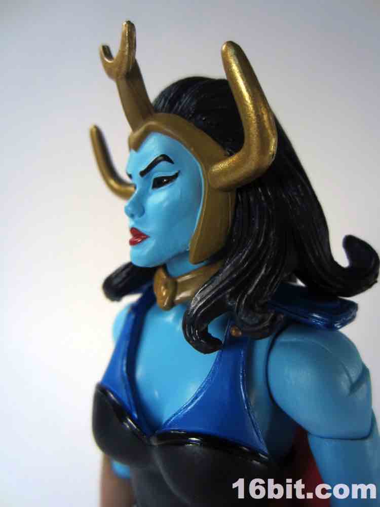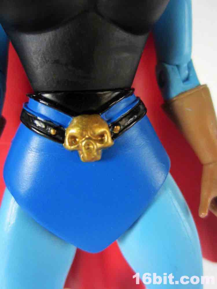 I should take special note to point out her deco - while not necessarily obvious in pictures, Mattel went all out here. The black parts of her dress are matte black with shiny black trim. Similarly, her dress is mostly blue but the straps around her shoulders are metallic blue, as are some highlights on the cape. This isn't something you'd notice if they left out, so it's obvious your extra pennies are going into the paint on this particular release. Accessories? Well, maybe not there.