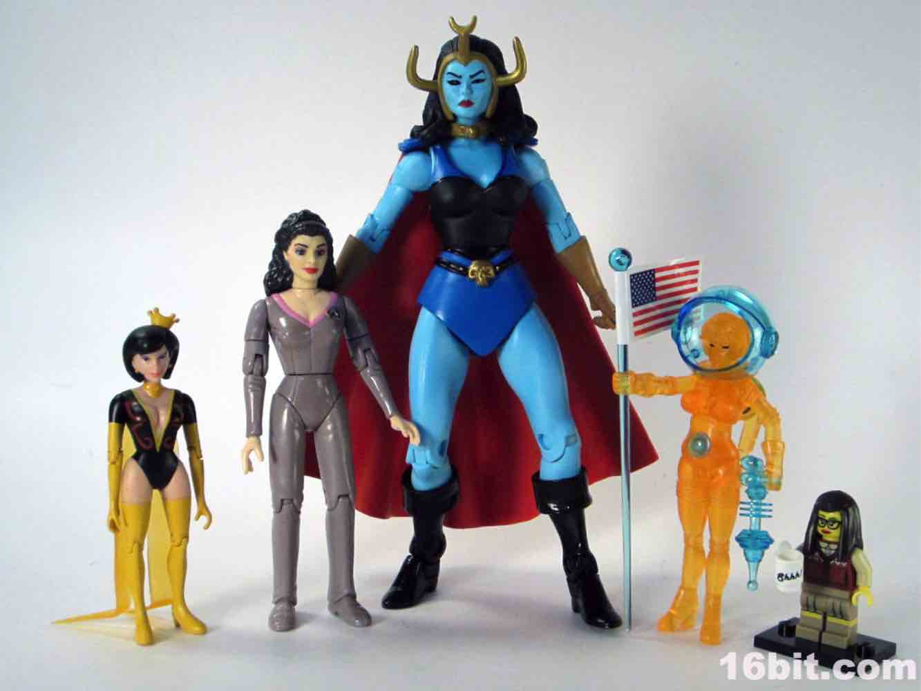 At about 7-inches tall, Shipoopi has more or less normal articulation for the line with roughly 22 joints, depending on how you choose to count them - 22 is being generous. My sample had no problems with any stuck joints, and getting her to balance was surprisingly easy - usually these guys put up more of a fight. Sashimi is made up of numerous existing parts - you'll notice Adora's boots, and the arms used on Octavia - with an all-new head, cape, and sculpted dress elements. The end result fits right in to the action figure line, with the bright Filmation colors being replaced with similar, but less garish, hues selected by the Horsemen and Mattel.