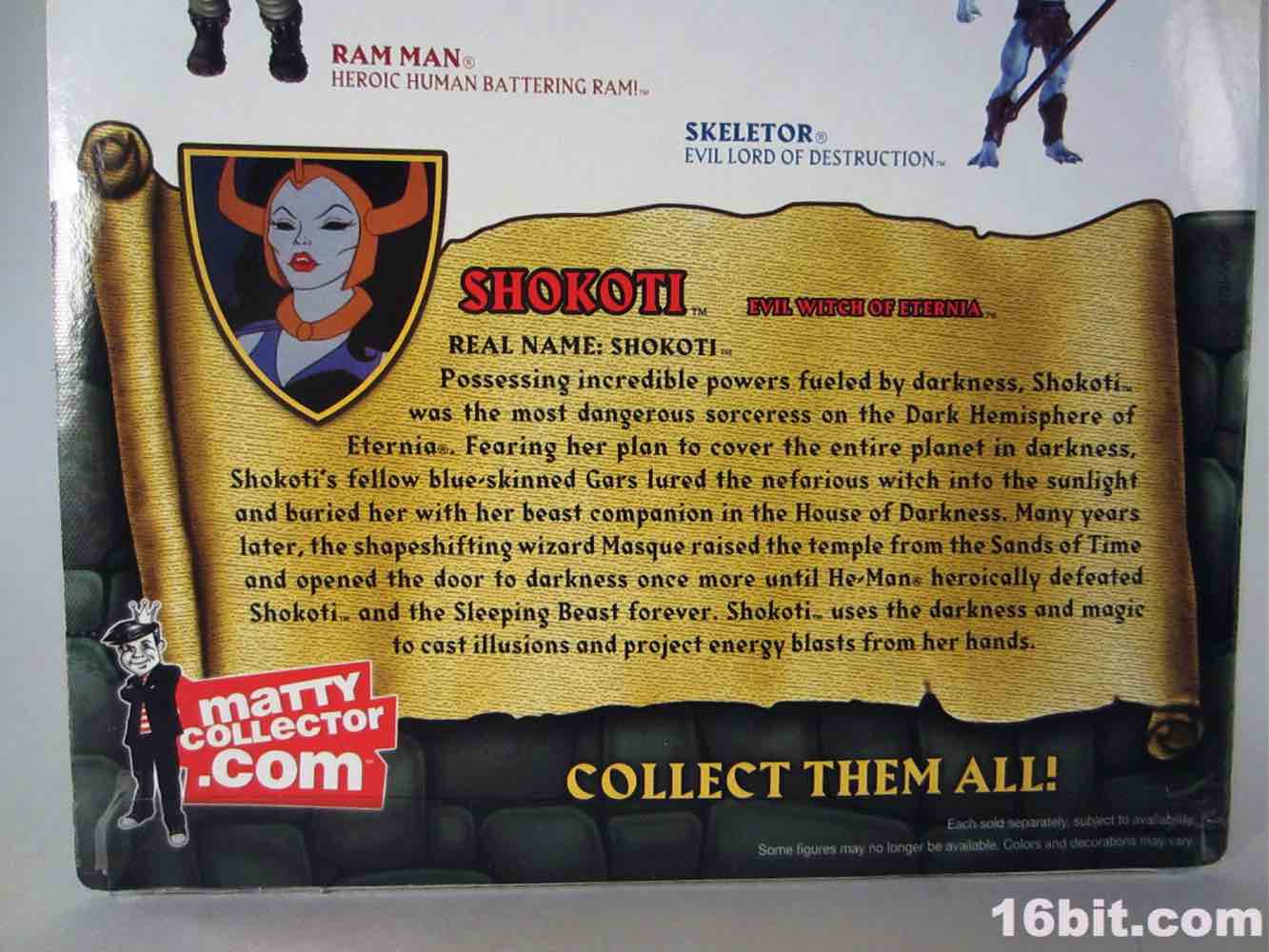 When we were told that Masters of the Universe Classics Filmation subscriptions were a possibility, Shokoti was exactly what many fans (including myself) were hoping would happen. She came from a two-parter, which was exceedingly rare in the series, plus had a distinctive look with lots of bright colors that, on the whole, translated well to an action figure. One place Mattel did sort of cheap out was the accessories, as she has none other than an admittedly high-quality Darkling mini-figure with no articulation, but top-notch detail.