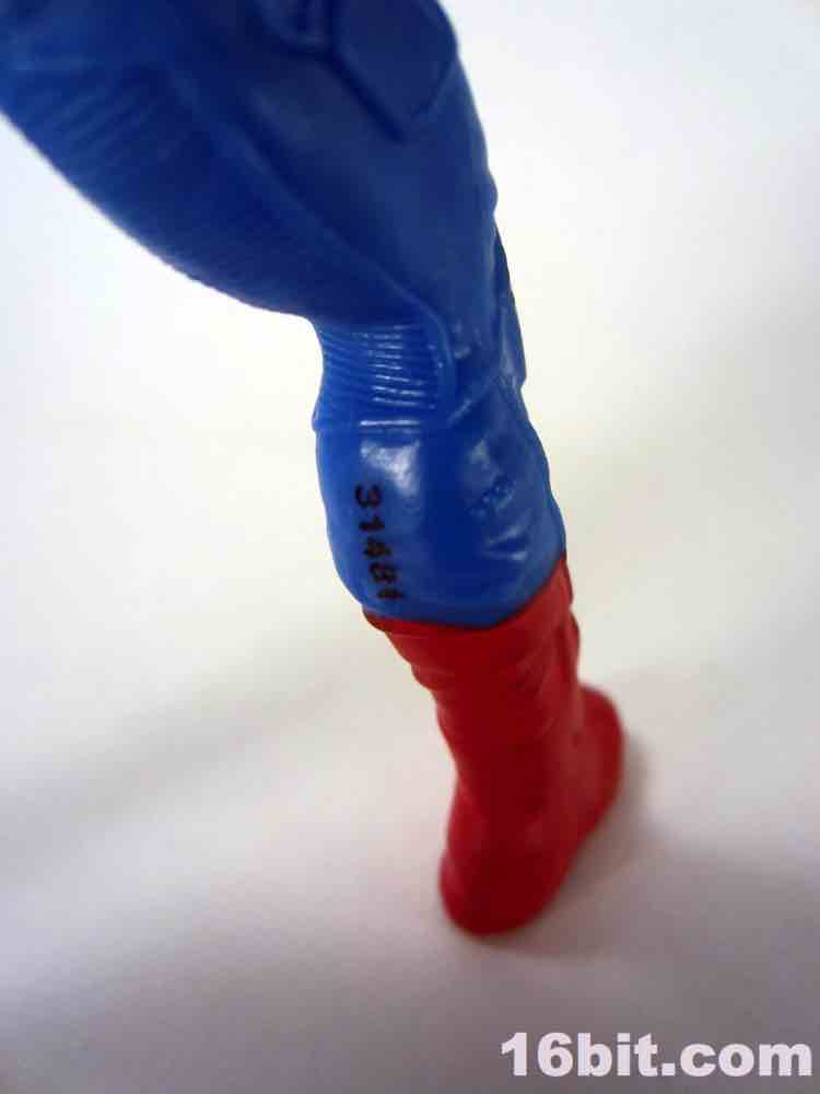Deco on these guys - and the Marvel guys as a whole - should require you to take a close look in a brightly-lit store. The eyes and face on my sample are great, but the flesh must be applied thick to overpower the blue plastic behind it. You might see 8 figures, and 2 or 3 are on the happy side of great - and the red paint does an OK job covering the blue for his gloves and boots, but it isn't perfectly distributed. Such is the crisis of a cheap figure in this day and age, paint still needs work. (Memo to fans: plastic should usually be lighter than the paint.) From a short distance the figure is great, but Walmart's bright lights and/or a camera's macro function can expose flaws you didn't need to see. The eyes are pretty good, but at this scale such fine details continue to provide a challenge to Hasbro at the lower price points.