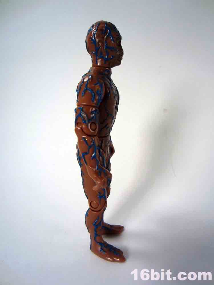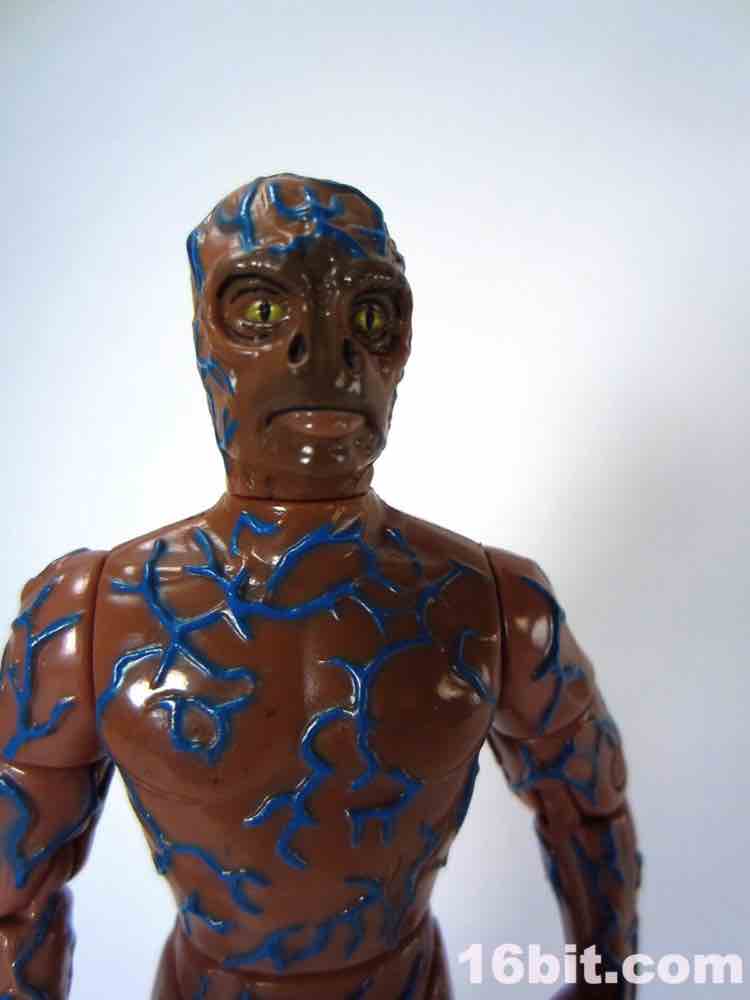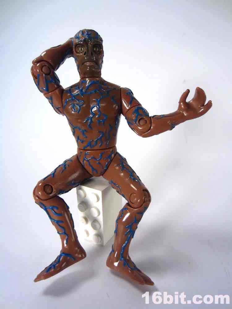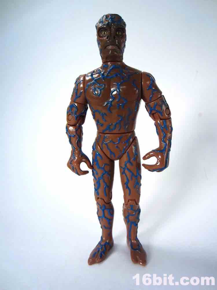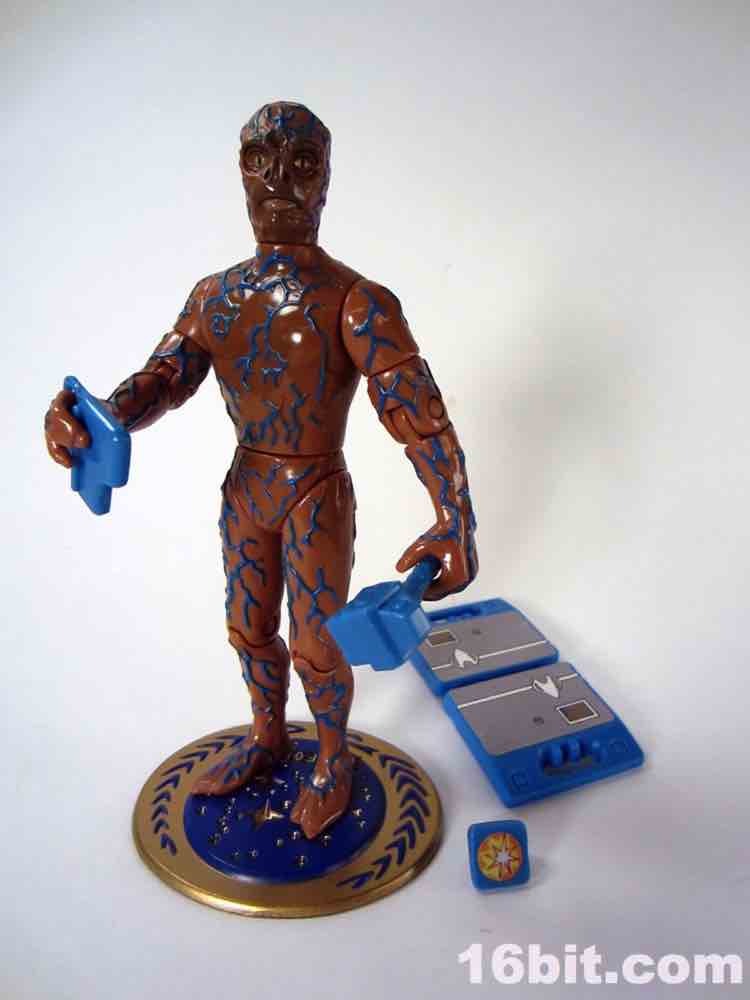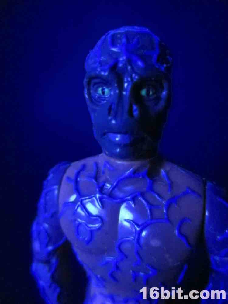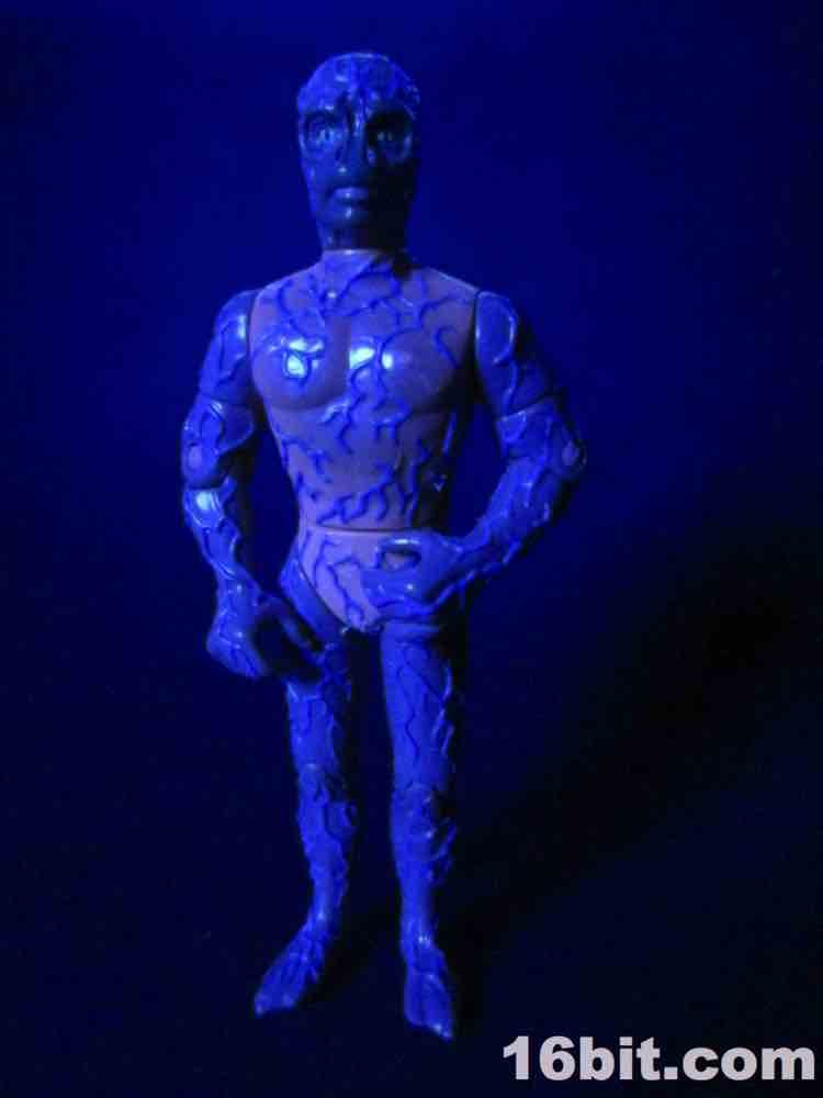 The story on the show was this: LaForge was on some away team mission where he had this thing in his genetic make-up that rewrote him as this weird brown glowing alien. The regular release is brown with blue veins on it, looking more like a Wayne Barlowe design. ToyFare/Wizard magazine had an exclusive clear blue version of this figure. Under black light, the brown version isn't much to look at - see below.