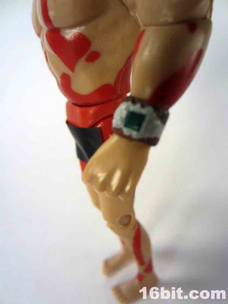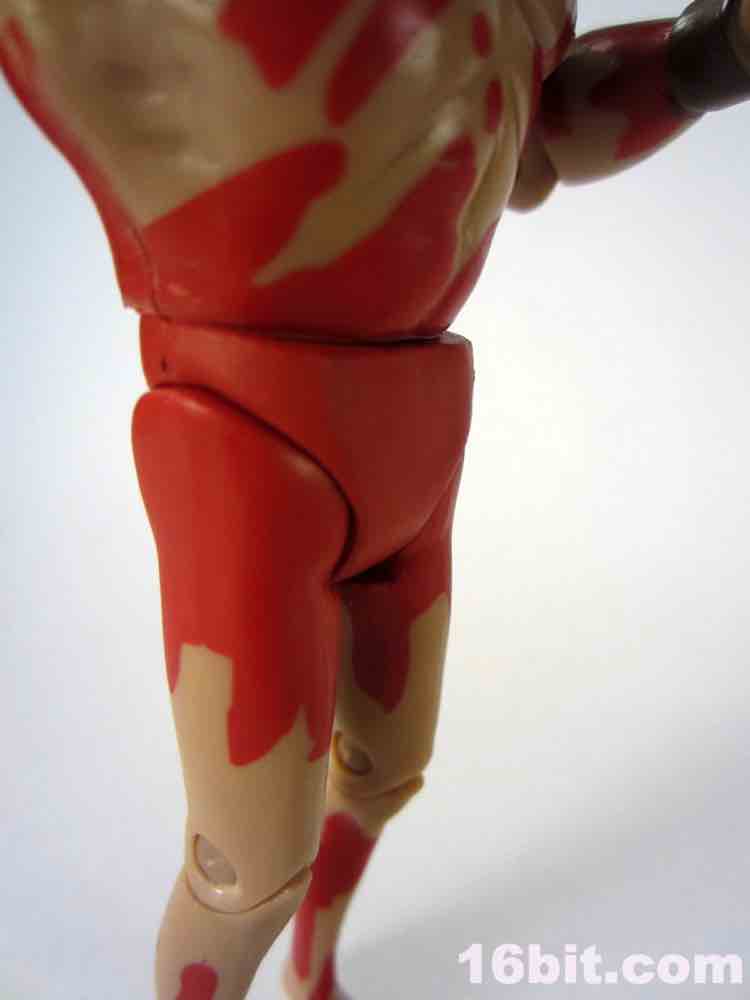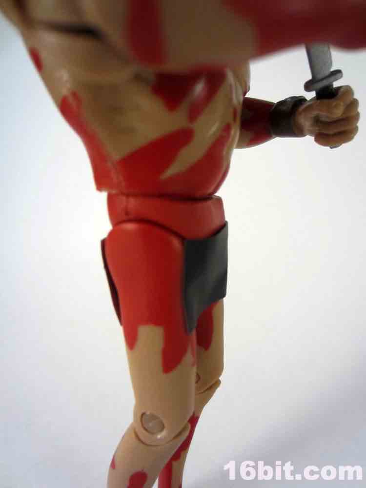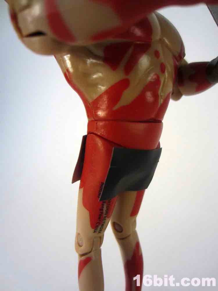 The black censored tape on his front and back is easily removed - it's not very tacky, and sticks less than a post-it note. It's exactly the kind of thing you want on a figure like this so it won't ruin the paint, and oh boy is there a lot of red paint here. The figure is molded in a "flesh" plastic with liberal applications and splatters of red, just like in the episode "Victor. Echo. November." It's the one where the Monarch meets up with JollyRancher82 after meeting her on the LiveJournal.
