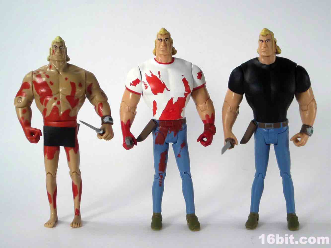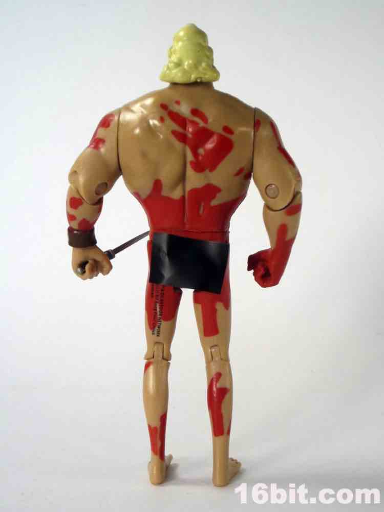 Internally dubbed "Naked Bloody Brock," the figure only says Brock Samson on the package. As with the others in this line, this was one of my ideas that I was kind of surprised that we got - most of the details are exactly what I asked for, save for one. I wanted his butt to be fully-sculpted on the backside (after all, that's how it was on the TV show) with a censored label on the front to disguise his Ken doll facade. Another story I won't get too much into is how the development of the figure at one point had a body part sculpted there that rhymes with the word "Brock" but let's not get into that right now.