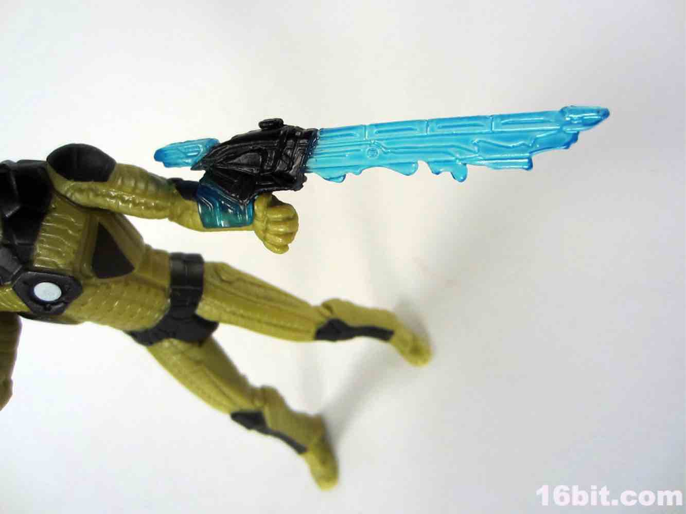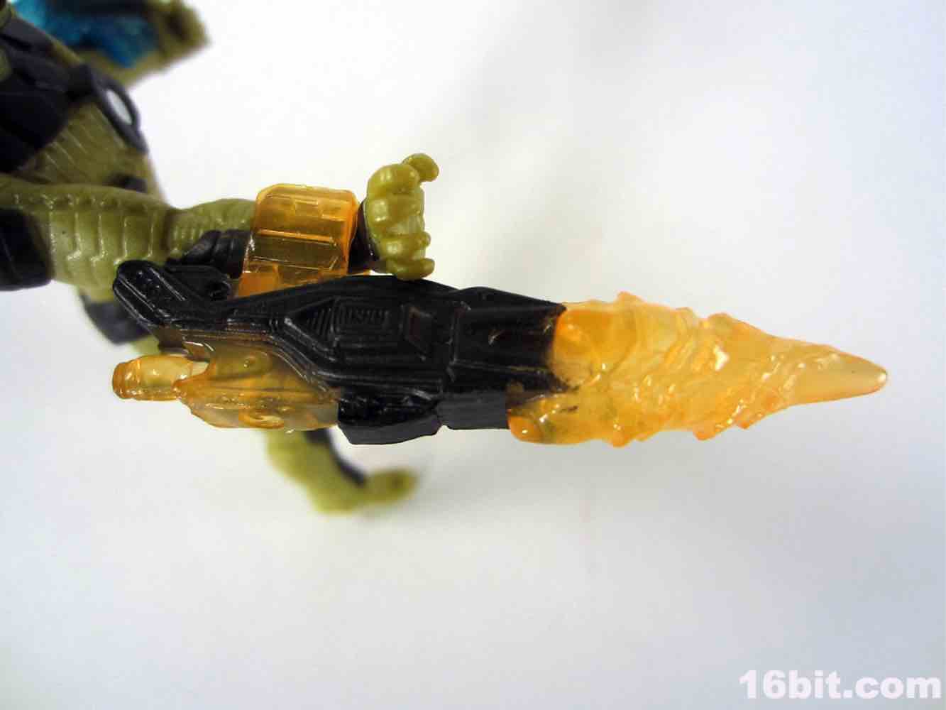 I assume most people will whine about how it's not from the movies and it's some made-up weirdness, but I grew up with Tec Shield Batman and I go for this kind of thing sometimes. The made-up whimsy of the designers works well here, with the "fire" and "ice"-themed blasters adding more personality to the figure. The energy blasts barely fit right, but they look cool and made me want to buy this figure when I saw it in the stores. I'm glad I did - he can't sit very well, but the design stands well and looks good on my desk. Get one if you are so inclined!