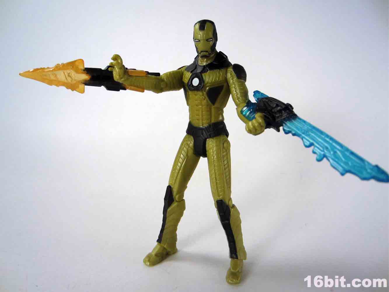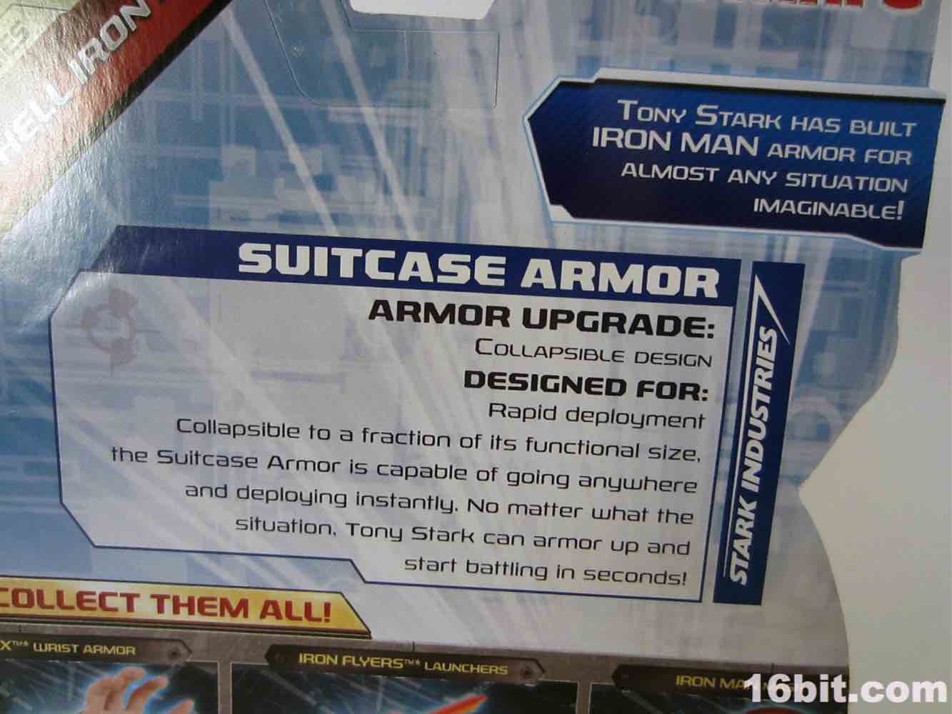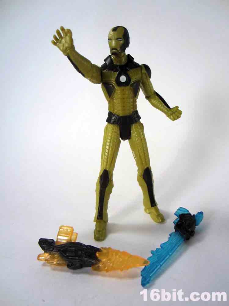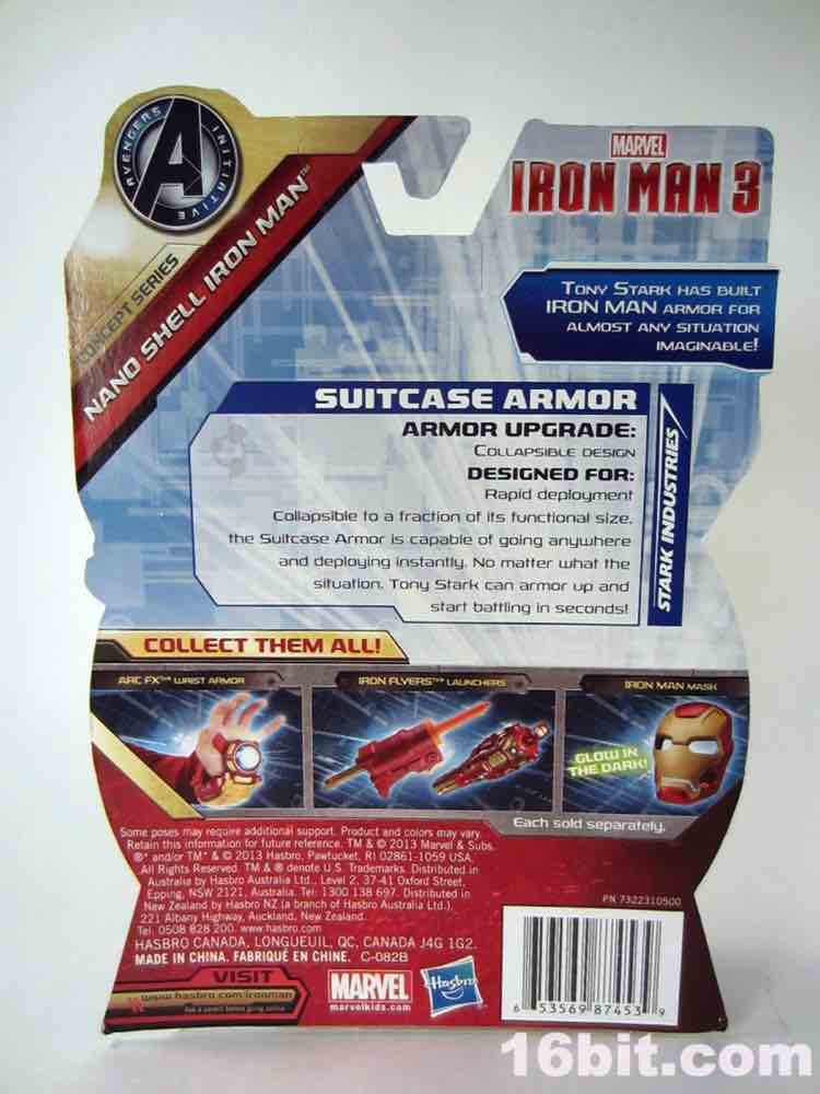 The five-jointed figure is marked 2013, so I assume it's a new sculpt - it doesn't seem to be packed in with any existing vehicles, but it is inspired by the Mark V Suitcase Armor from Iron Man 2 in its overall look and feel. While the figure's various repulsors are undecorated, he is in a nifty action pose with one fist and one hand extended out. The legs are more or less posed in an inactive manner, with lots of sculpted panels to resemble that previous movie design in nearly everything but color.