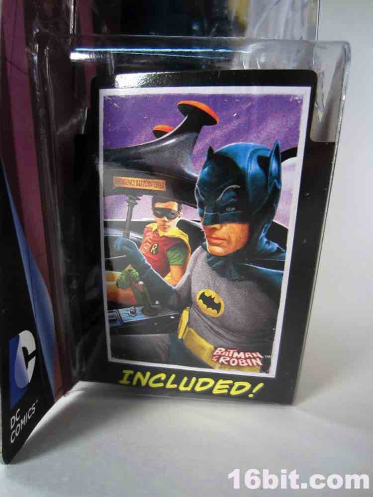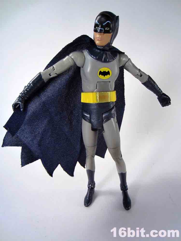 The figure is well-jointed and the sculpt is good, but not perfect. The flesh paint is a little thick, btu the costume is right. I like the belt, I like the outfit, and I love the mask with its light blue highlights. I had no problem fitting the figure in the Batmobile, minus the seatbelts, and the cape looks goofy like it did on the TV show. As such, some fans may not care for it - Adam West as Batman is a classic piece of TV history, but is one of the elements of Batman's history that many fans would soon forget. If you can appreciate the show for what it is, you're going to like this figure.