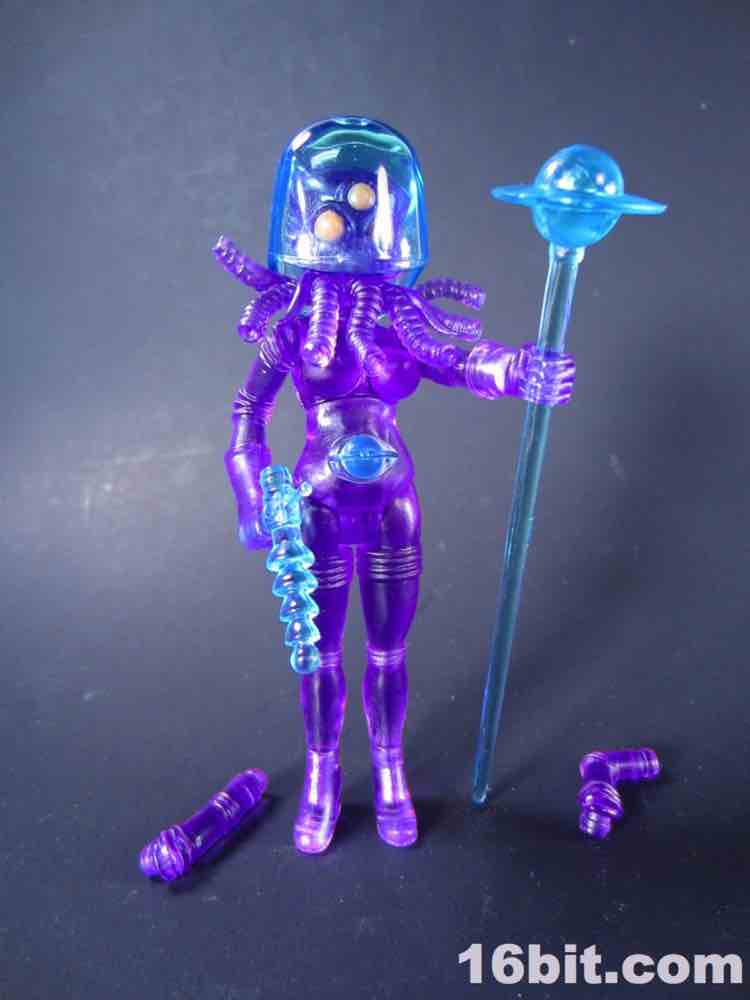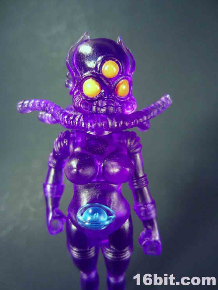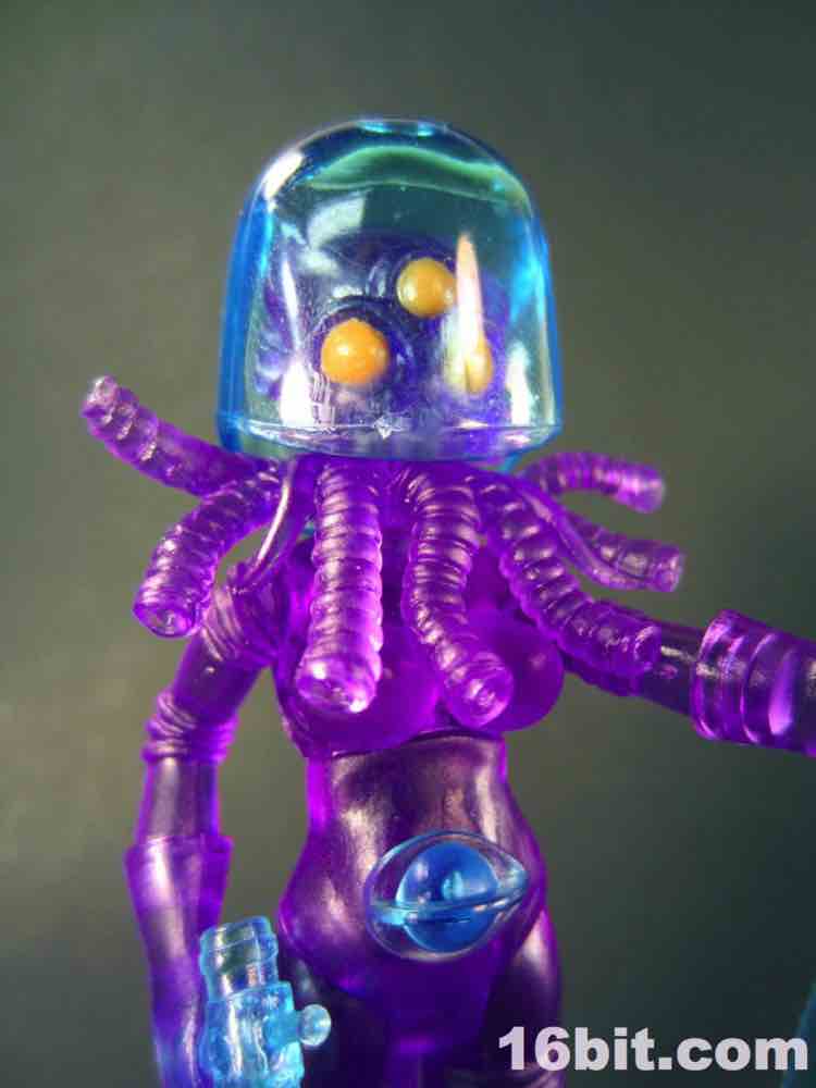 If the Four Horsemen stick to tradition, we'll have one or two more flavors to go before the end of the year. An all-white Horroscope was sold at New York Comic Con, and a fully-painted one is expected in the next few months. Tradition also dictated a Galactic Holiday edition figure with chrome accessories, but we're seeing some adjustments made to the release schedule and to the products so it's possible that release pattern may be changed from here on out. She's a unique figure - seriously, you won't ever see anything else like it - so grab her in purple or wait for a color that's more your speed. The fully-painted one has an orange suit and a blue head, and is just as terrifying. At this rate it's possible this could be the only clear version, but I'd bank on another before the end of the year. If you're collecting this line, get this figure - even though she's not a remake of a classic 1960s space alien, I sincerely doubt you have anything else quite like her in your toy collection today.