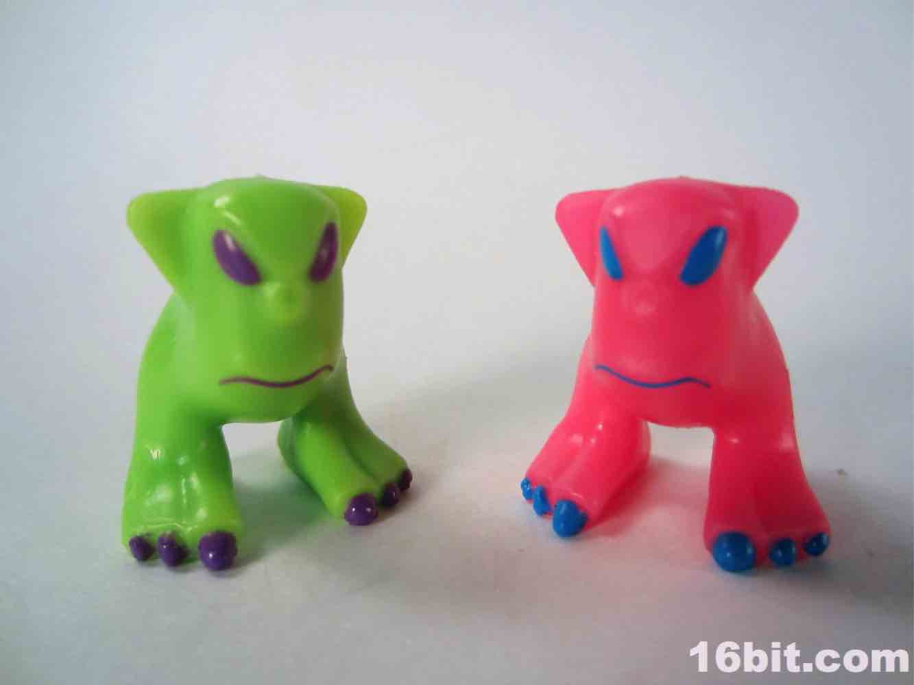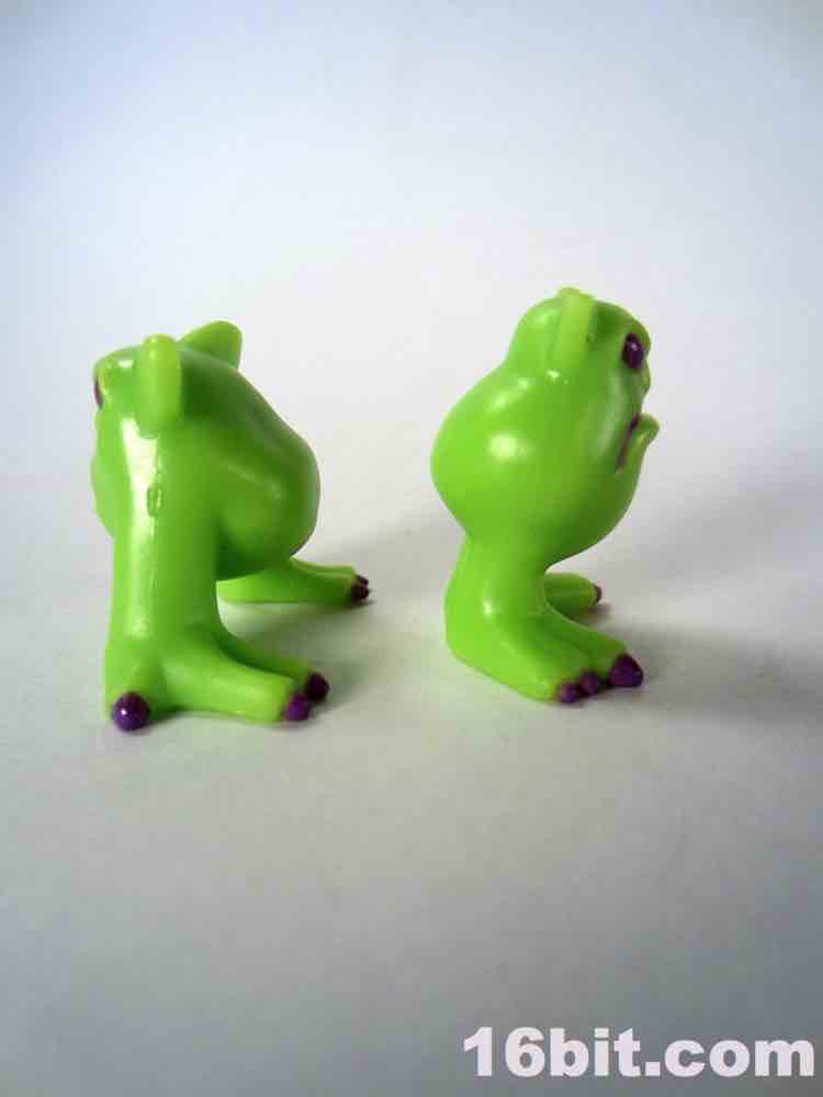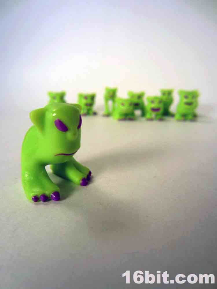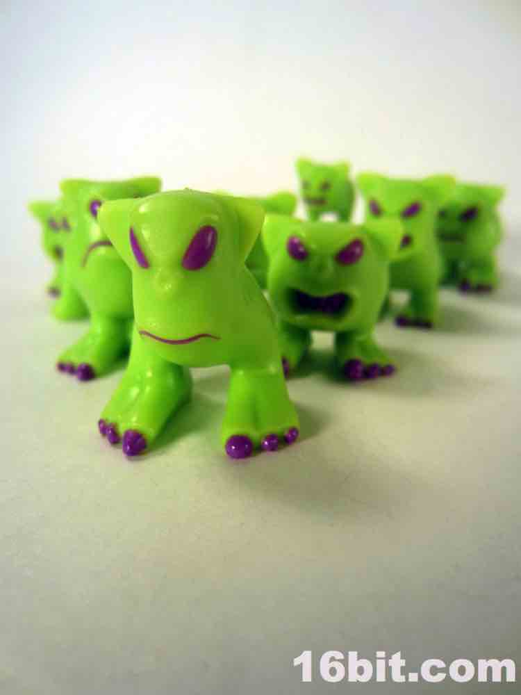 Green and purple are often "bad guy colors" in toys, or are at least secondary or non-heroic characters. (Take that, Donatello.) This batch has purple claws and mouths, with eyes to match - as of yet none of the smaller Mordles have differing colors of mouths and eyes, but a large vinyl figure does and it looks a heck of a lot better for it. You might be noticing that I'm not saying a lot about these figures, and that's because they're a challenge to talk up once you get past the color variations - you have a few figures like Zogg that look more eloquent, a few with vicious and toothy Critter-like faces, and others who are just kind of there. They're incredibly well-sculpted, nicely-replicated, and frankly fun little guys to keep around on your desk - but it is quite the challenge to point at something about them to say that the Rampaging Storm is in any way superior than the rest. Do you like green? You'll like these.