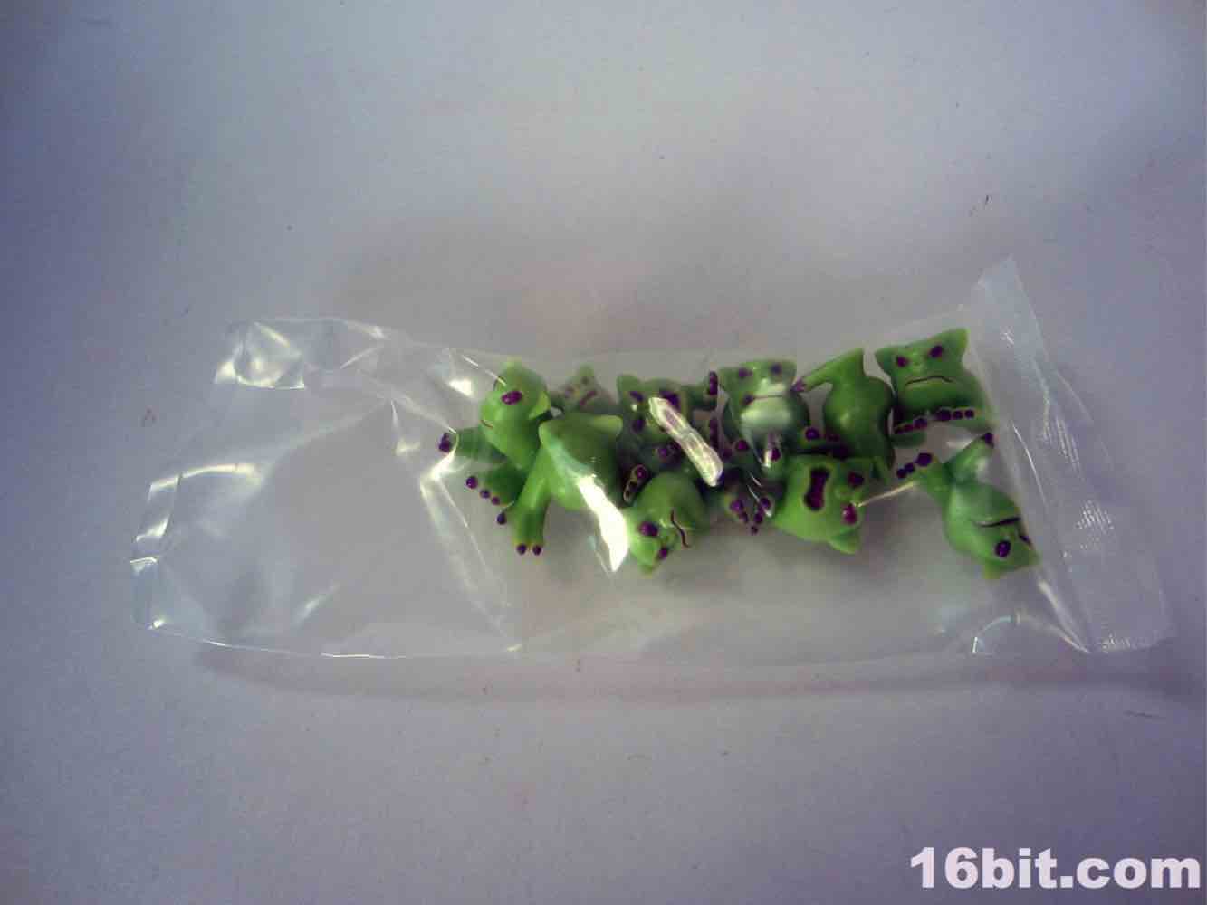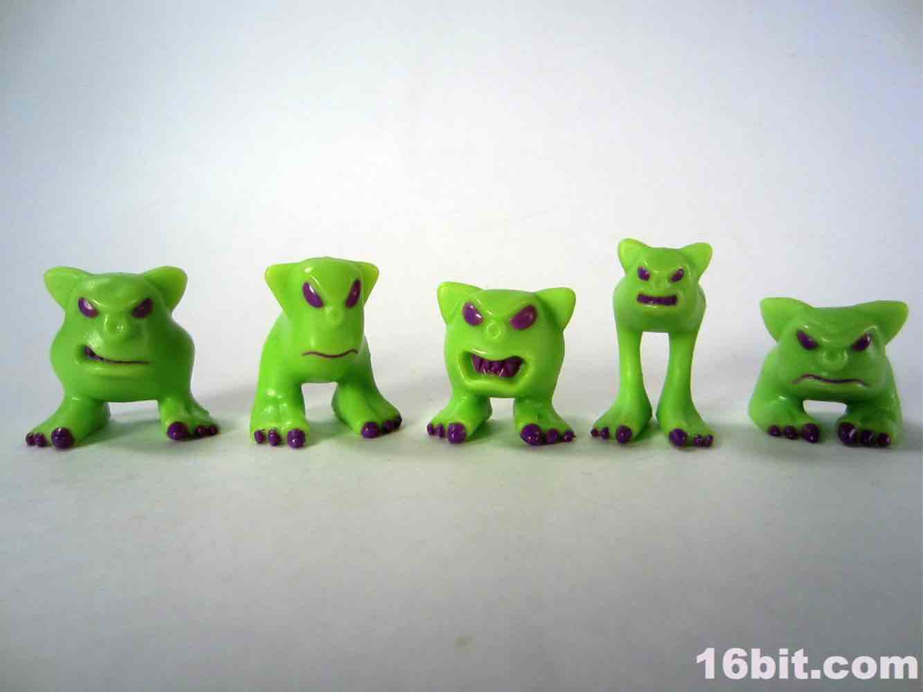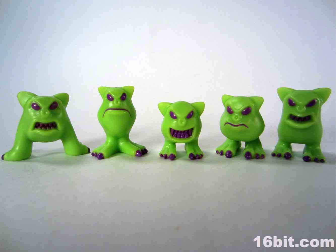 The many designs have been replicated here in a light green color that doesn't quite match anything else I've seen in the recent exploits of the Glyos/Onell factories in China. The selling point of this set is Commander Zogg, a long-faced little guy who is described as the Commander of All Mordles. He was on the Fan Club certificate this year, and I generally like the idea of getting the purple-eyed 1-inch high figure a little more attention.