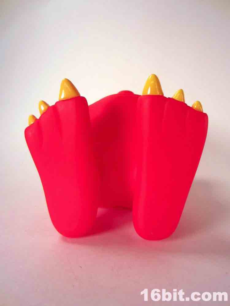 Unlike his smaller cousins, this hollow figure has more going on with paint. The eyes and claws are yellow, but there are also individually painted white teeth as well as red paint applied to the mouth. You read right - there's red paint on the red plastic, to give the interior of the mouth a richer, more moist appearance. Huzzah and kudos. This is the kind of detail toy companies would generally leave out, so I'm pretty pumped to see it here - it's not obvious when you first look at it, either. I should also point out the large, white teeth on either side seem to be painted shorter than they are sculpted. If you get in close, the point goes on just a little bit more.