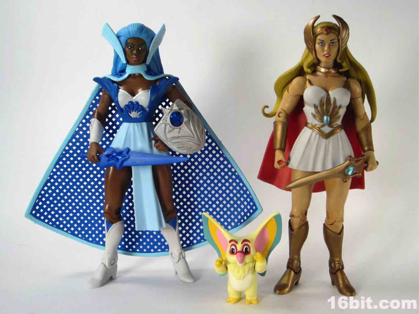 Strobo's gun is another new piece, which arrives without the benefit of Strobo having gone on sale to the general public yet - if you were at the right convention, you no doubt have him by now. The mirrored gun has a silver tip and black handles, making it a good fit for either Strobo or any of the various Zodacs or Zodaks you may own. Mine was a little misshapen. Also cool, Netossa's blue sword - the figure came with just a shield last January, so these two weapons really help to flesh out a couple of figures that were feeling somewhat incomplete.
