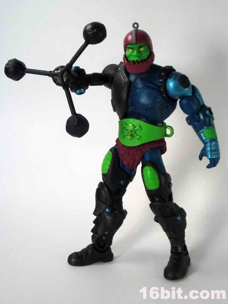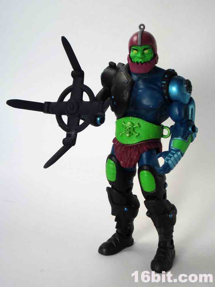 Other new additions: He-Man's sword, shield, and axe in green. Other than the shield, these are unpainted. Weapons Rack gear in gold - looks cool. Sir Laser-Lot's gear in silver - looks significantly better than the original clear red. Hurricane Hordak's attachments in black. Eh. Trap Jaw's gear in silver, to match Roboto. Nice. If you're been collecting the whole line, this set is largely quite good... but getting Strobo's gun early is a little disappointing without Strobo in hand yet. I'm not sure what I'm going to do with green He-Man weapons yet, but they certainly look cool.