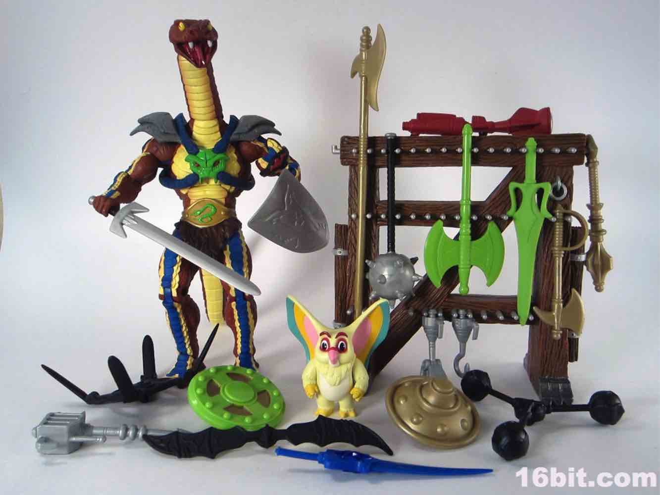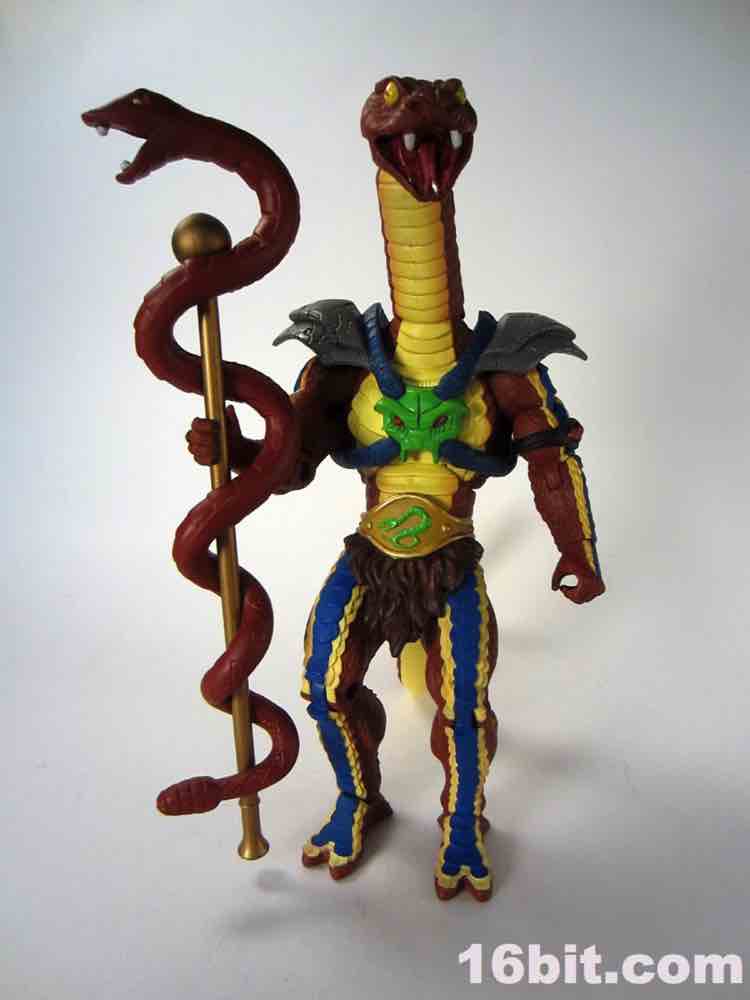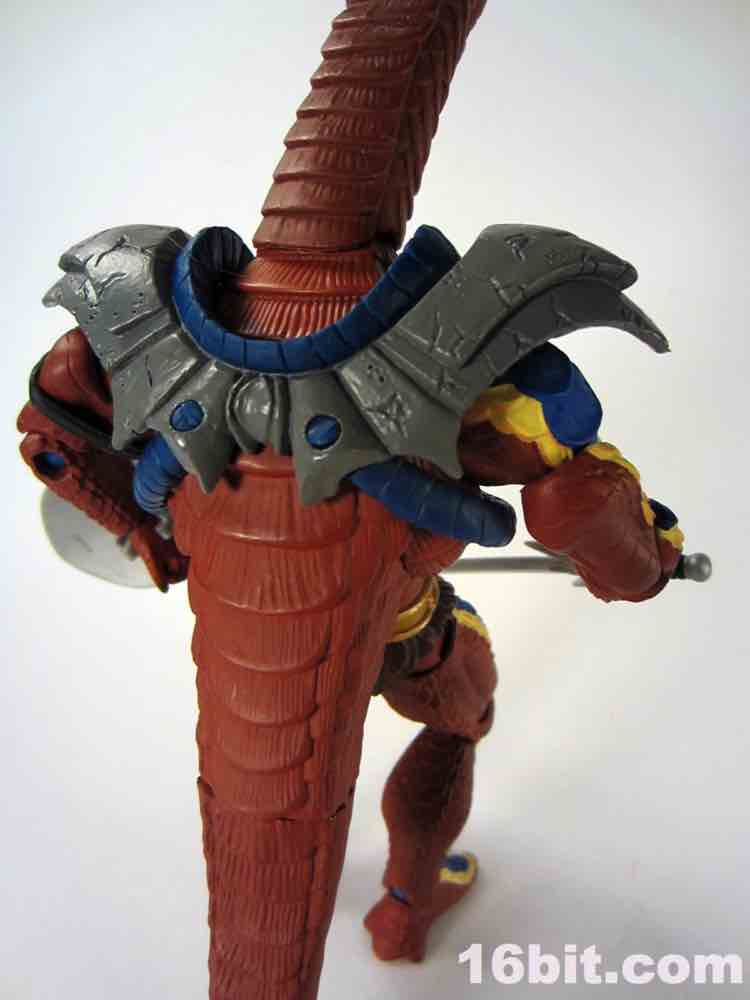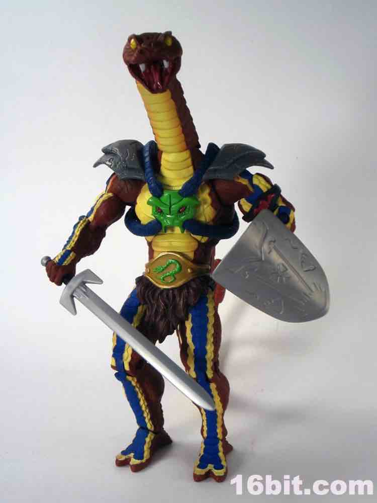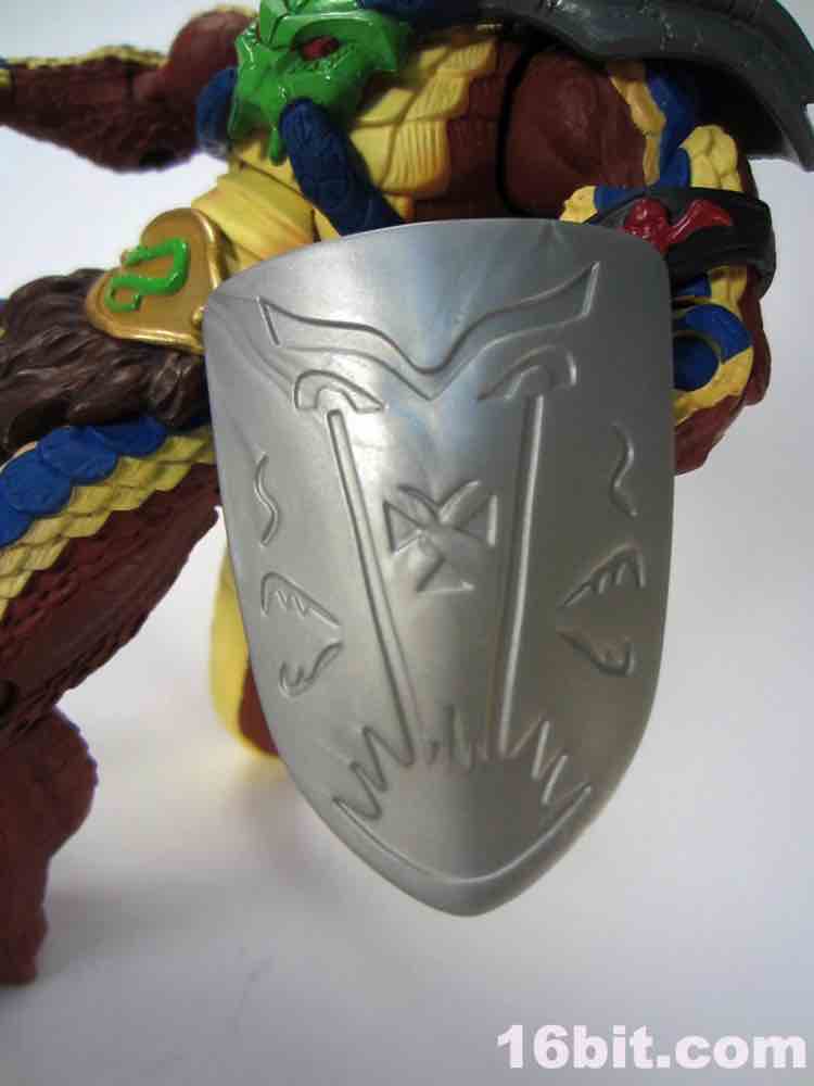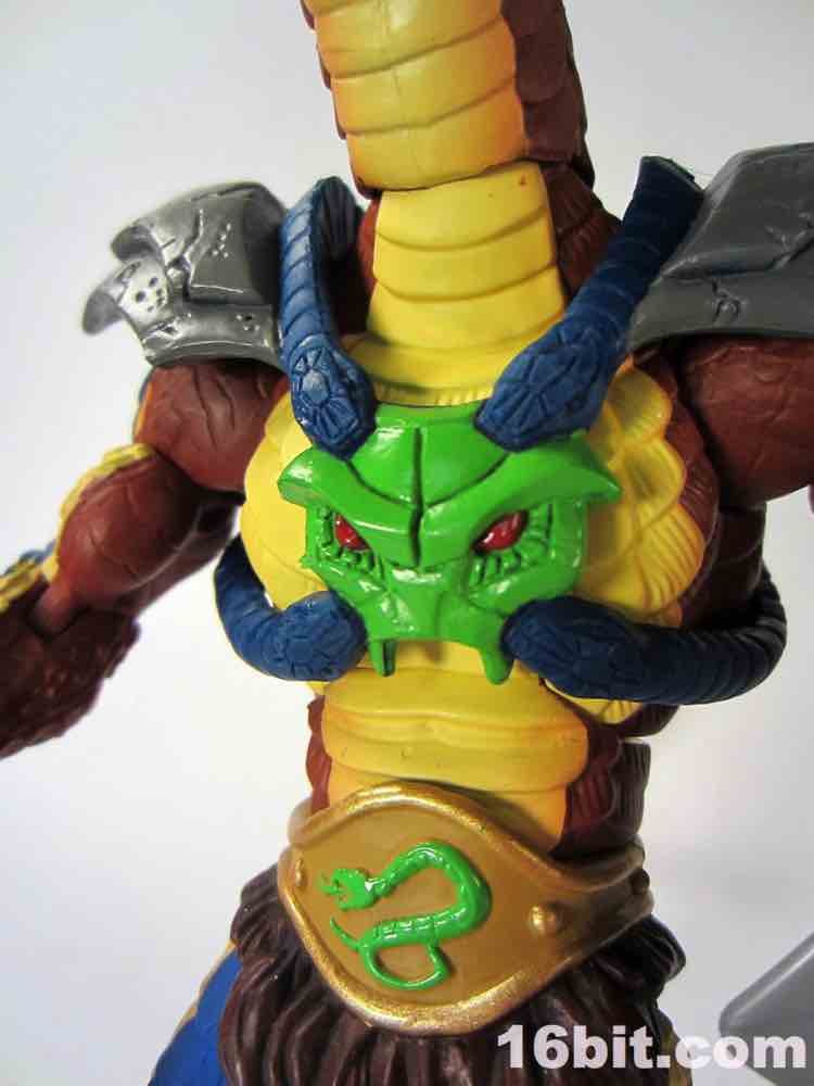 Rattlor's armor is modeled after a piece that was costed out of the original figure and was itself inspired by the armor worn by the General in the 2003 action figure line. Sadly it wasn't part of the original release, but it looks nice and fits well on the snake man's body. Getting the straps in place can be a little tricky, but they ultimately fit just fine and the blue matches Rattlor's scales nicely.