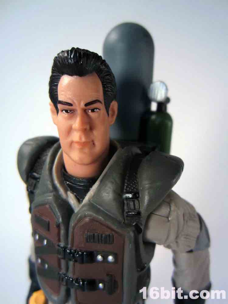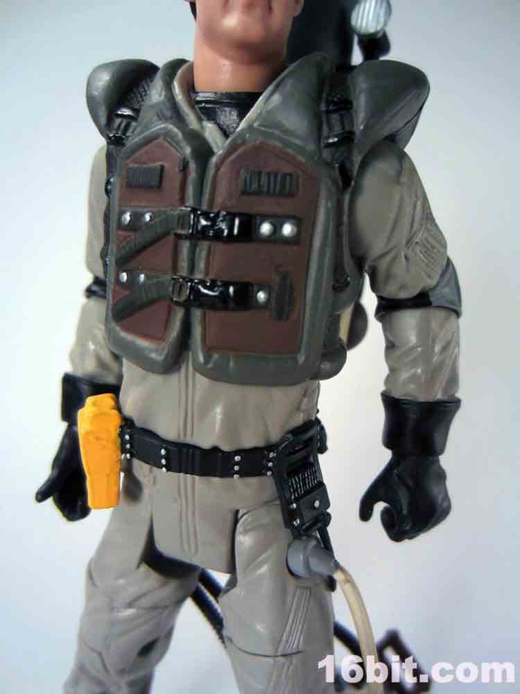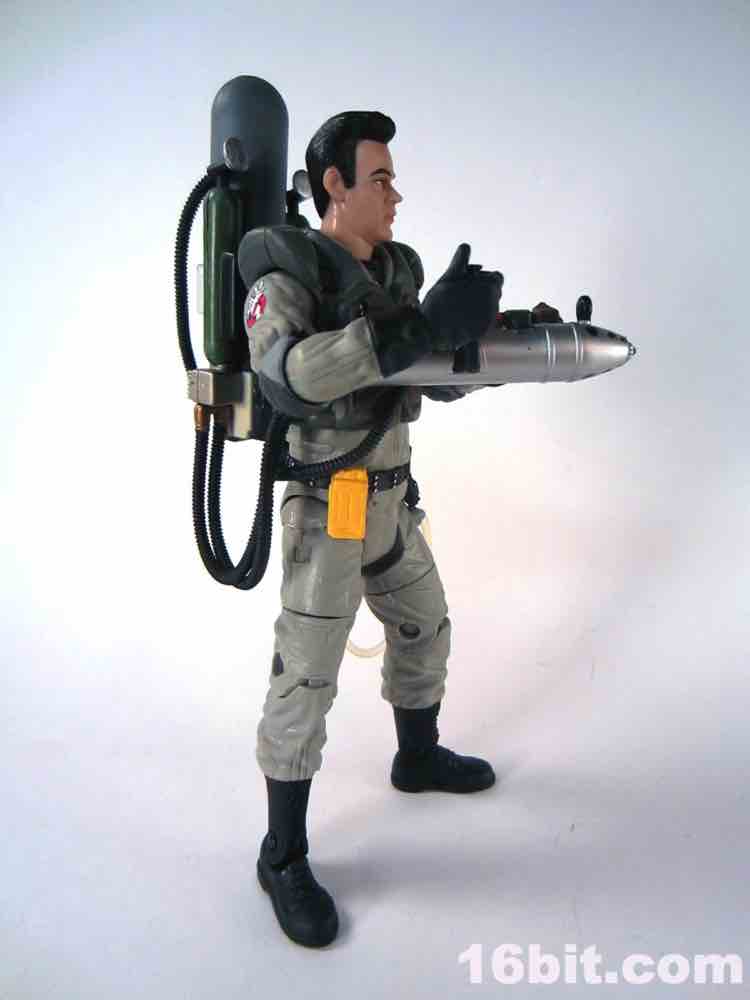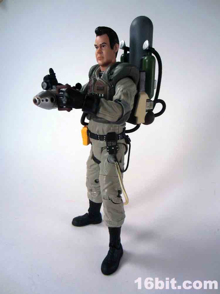Ray looks pretty good - this is a Slime Blower Winston body with a Ray head, which is sort of a cop-out and, at the same time, the kind of thing you do to make your budgets work. For a higher-dollar prestige collector line, it's not something buyers appreciate in the slightest and this sort of "head swap" is what put me off Star Trek in the 1990s. Were it a better figure I'd like it more - Ray was packaged not holding the Slime Blower correctly, and after futzing with it I got it more or less holding the gizmo correctly. The second movie isn't a favorite of mine, but I can't deny that the Slime Blower turned out great with lots of painted detail. Lots of hoses, lots of stripes - I got my money's worth here. Ray's head is a decent Dan Aykroyd likeness - while it looks vaguely Nixonian, there's no mistaking it for someone else. It's Ray. As my only movie Ray so far he's pretty good, but the non-removable backpack is sort of a bummer.