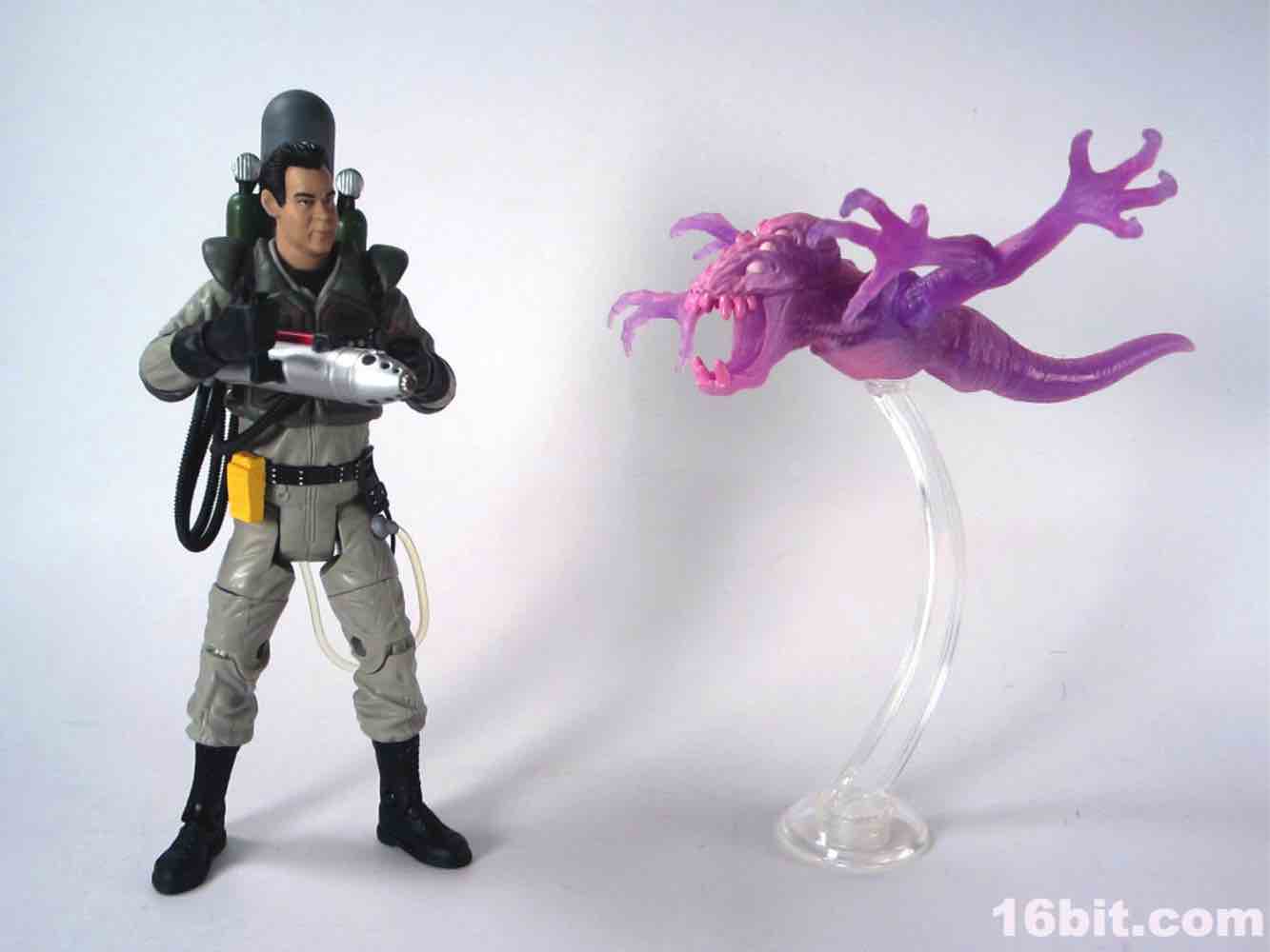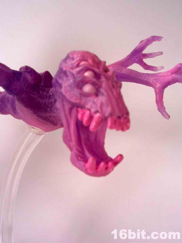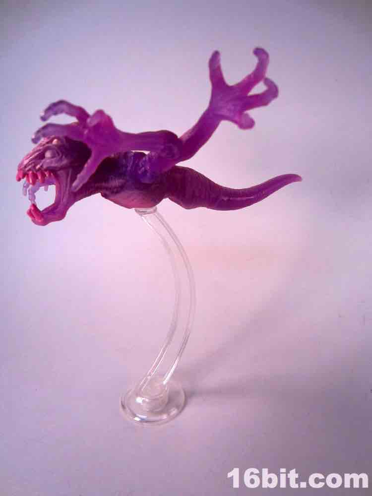 Joining Ray is a Cinema Ghost, a nicely freaky purple clear creation with some frosted deco on top. This is, without a doubt, the selling point here. His pink shiny teeth are hard to ignore, as are the six blank white eyes. The ghost has a jointed tail and a couple of joints on each arm, plus it plugs in nicely to the display stand.