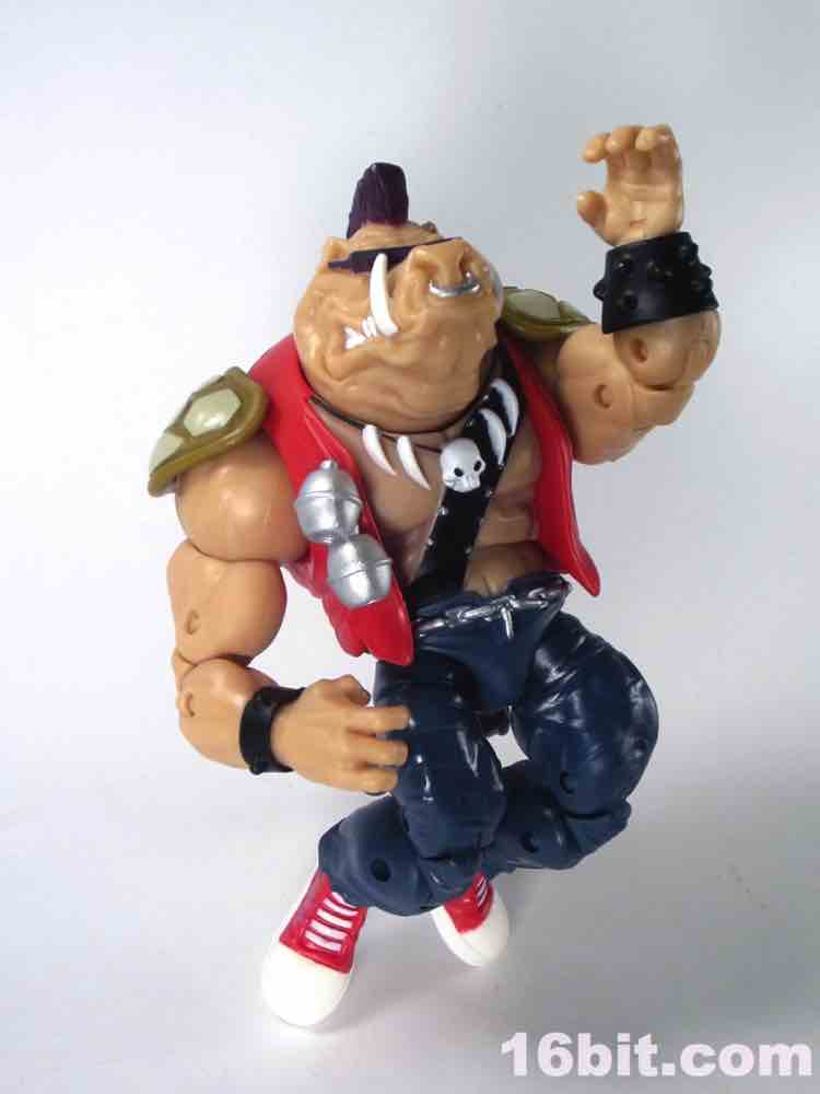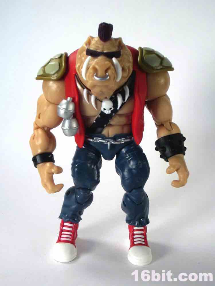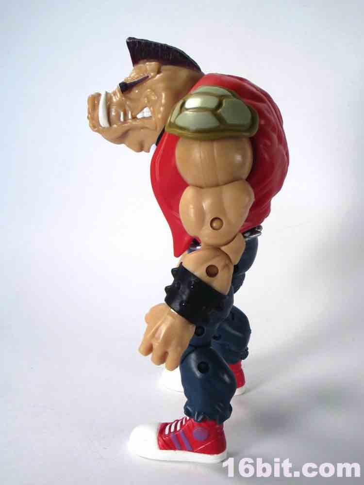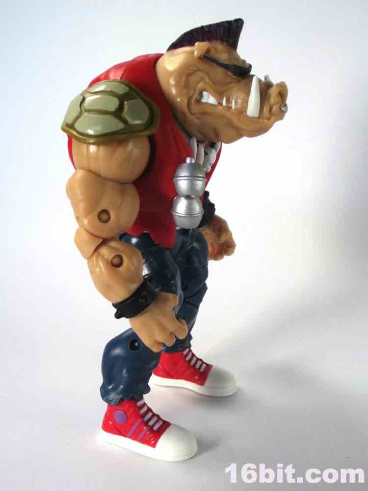 Standing over 6-inches tall, the figure is a bizarre amalgamation of a modern Marvel Legends/Mattel Classics figure and a chunky, squat 1980s action figure. It's also slightly smaller than it should be relative to the green teens, making it a little less threatening and harder to buy as a bad guy. Bebop retains elements of the TV show, but those animation models were a little skinnier and had slightly more human proportions. This version of Bebop barely has a neck, but it does retain the ammo bandolier, red vaguely Chuck Taylor sneakers, and red vest. The pants are the wrong color, but whatever, it's "inspired" by the original TV show and not a direct adaptation. (Otherwise the turtles would look too goofy.) While it's not entirely accurate to any existing incarnation of the character, it does look appropriately close enough to them that I don't think anyone is going to mind too much. Well, except the ponytail - I really do miss that being here. The face doesn't look too close to the toon, but it certainly looks like something that came out of Playmates before 1990. It manages to fail at replicating anything too accurately and what you're left with is a 2010s version of a 1988 figure.