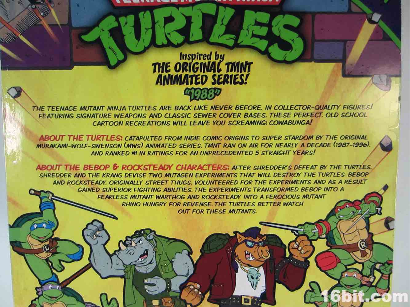 ...and just for fun let me complain about the back of the packaging. The artwork is terrible and I don't know what they based it on - the costumes don't look at all right. "About the Bebop & Rocksteady Characters" just as verbiage sounds like something ripped out of a press kit sent to the AARP. C'mon people, speak like a human being on these things. We deserve better. The copy on the package feels like it's written for people who are completely unfamiliar with the characters... and collecting toys. As these figures are clearly designed for older fans it'd be nice to see something geared more toward people and not some form of sentient robot.