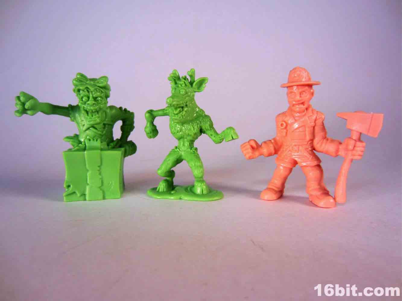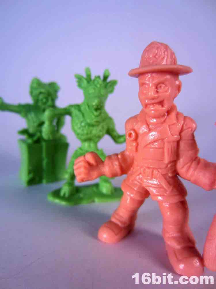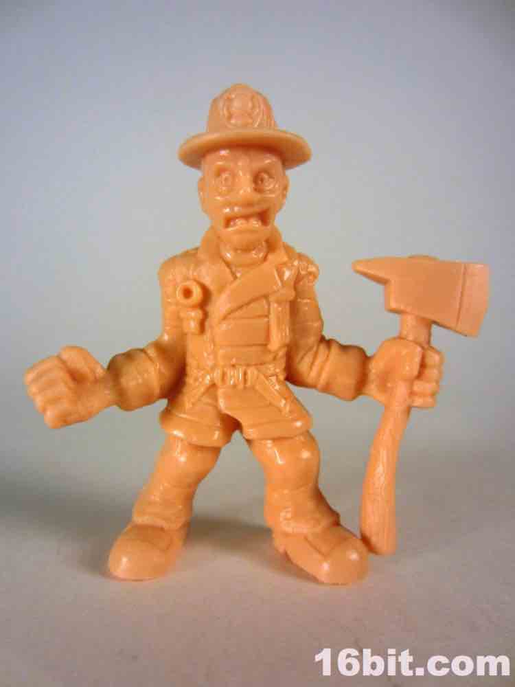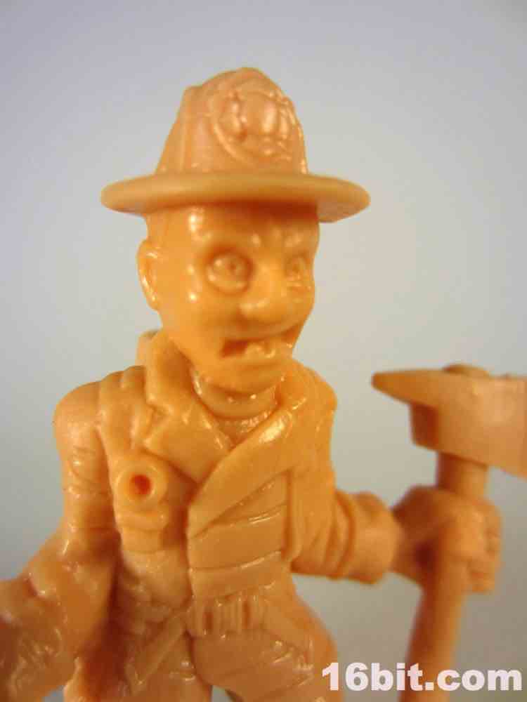 The boring repack, Blazin' Basel, is pretty good. Most of the humans in this line are, to me, fairly obvious tributes to popular culture but I don't get who this axe-wielding firefighter is. (I admit, I've seen few horror movies.) The sculpt has a freaked out or screaming man in a fireman's jacket with boots and pants, and nothing seems obviously goofy or weird. It's neat, and it fits in nicely with your other rubbery collectible mini-figures, but in and of itself it isn't terrible exciting. It's a good figure to fight the zombies, or be consumed by them.