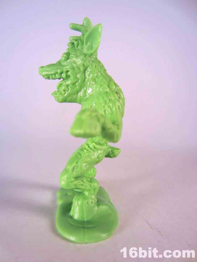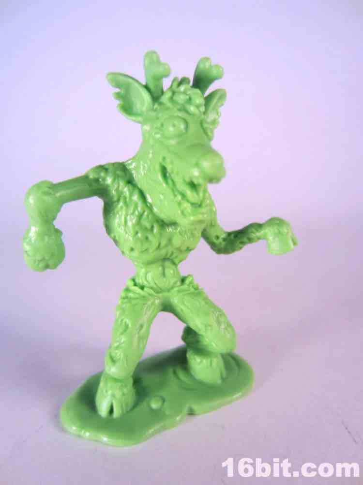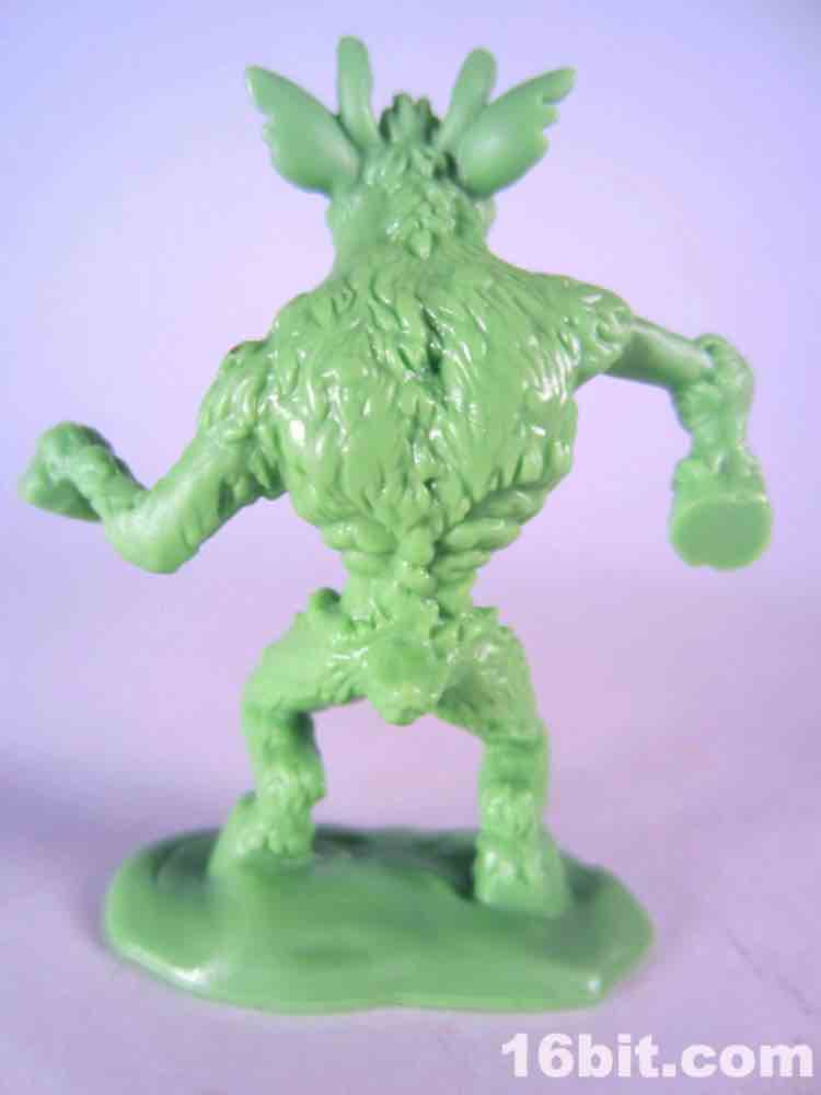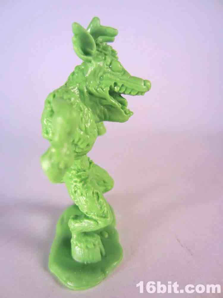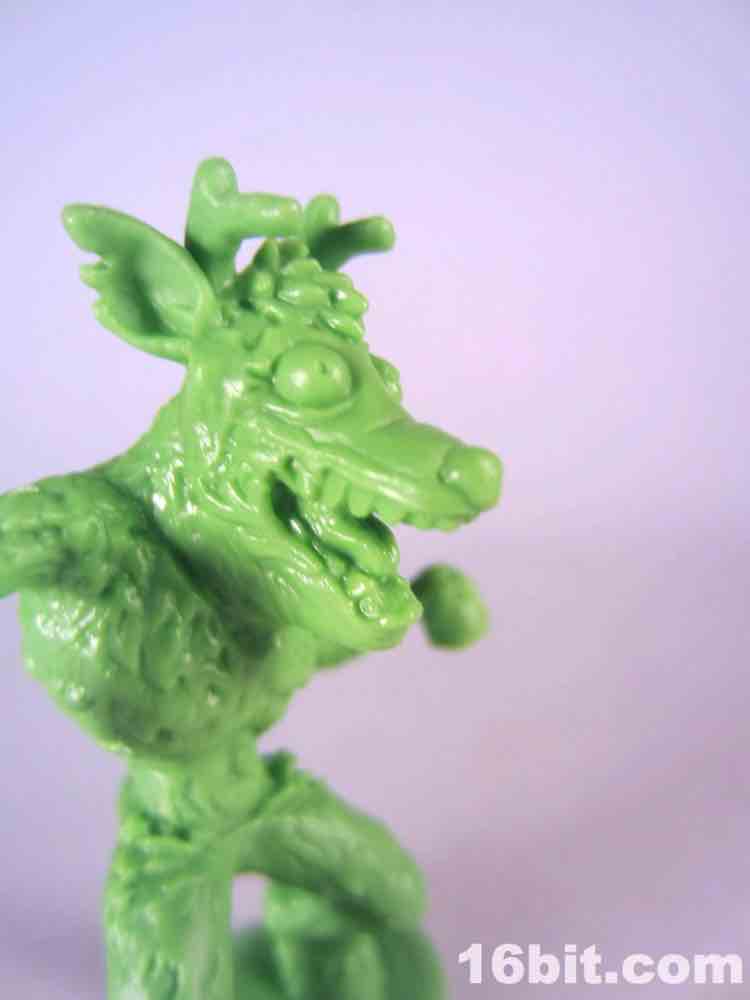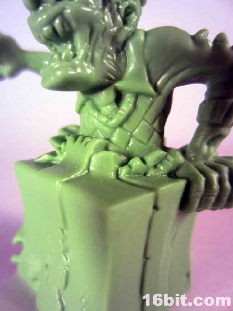 Not based on anything in particular is Surprise Demise, a dad/grampa type in a sweater vest. Or what's left of a sweater. He's leaping out of a gift box and is really about as thematically perfect as you could hope for. The box alone is more interesting than a lot of small collectible figures, with tattered ribbons, crushed sides, and what seem to be some sort of claw scrapes. It's swell - and the figure bursts out from the top quite nicely. I don't know why he's jumping out of the box to reach over to the side - where he isn't looking - but whatever. It looks cool, and it seems like this should have been something I saw in 1987. With the recent zombie surge in popularity I would have loved to see more of these out there, but this figure is probably never going to be seen ever again except on the desk of the weird guy at your office (you know the guy).