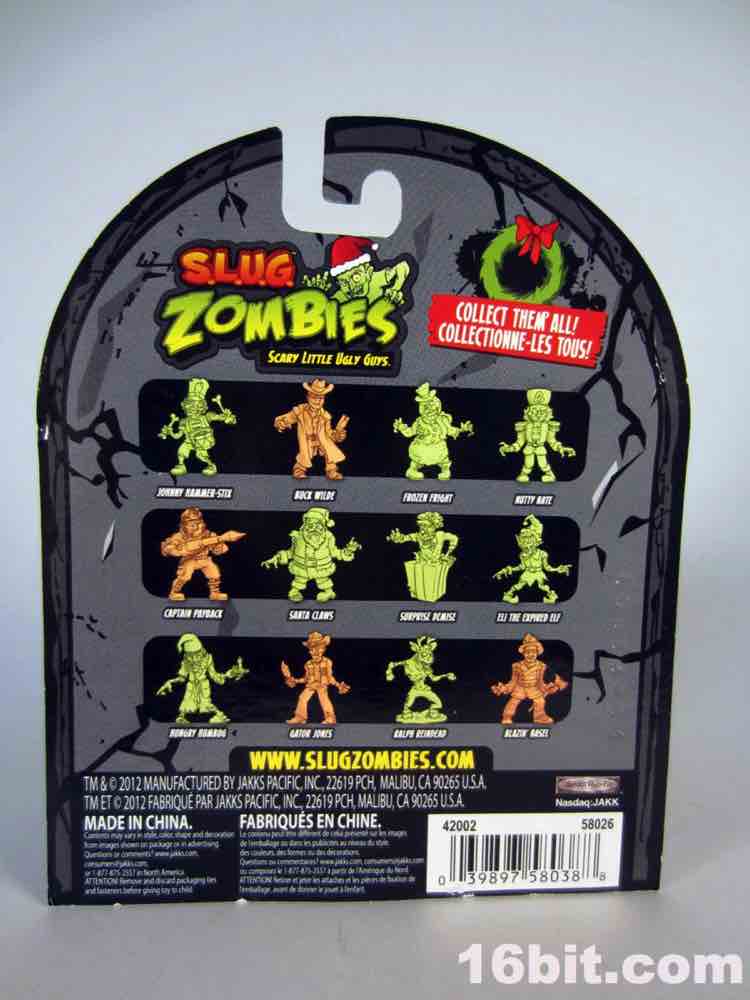 It's the season for Christmas S.L.U.G. Zombies! The M.U.S.C.L.E.-inspired finished off their brief run with 4 Christmas sets, each of which had 2 new and 1 repackaged figure. I meant to look at more of these this year, but was hoping there might be news or new information on them. No dice. The line up and ended last year with series 4 and the unnumbered Xmas Series, so let's look at another pack.