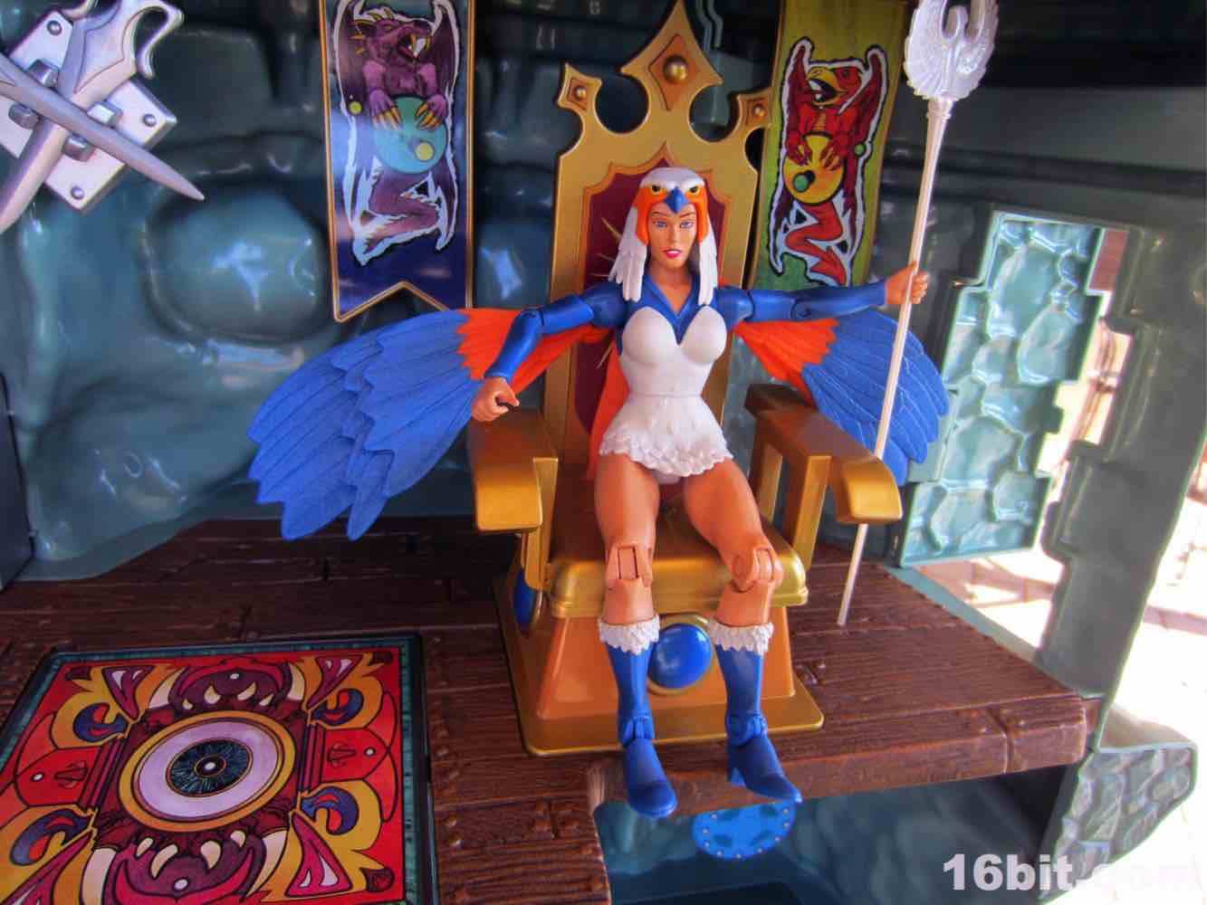 While more or less a modernized, upsized replica of the original toy, it's worth noting that Mattel did take the time to ensure certain.shtmlects of this item worked to be compatible with modern figures. The single most impressive detail was in the Grayskull throne - you'll notice there's a slot in the seat. This is so the Sorceress can sit in the throne without bending her tailfeathers, and this is the kind of attention to figure compatibility that I frequently don't see in a lot of Hasbro's action figure vehicles and playsets lately. It's incredibly important, so I'm glad Mattel got it right on their first and probably only playset for this line.