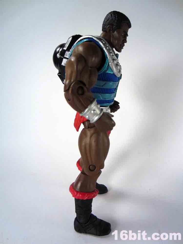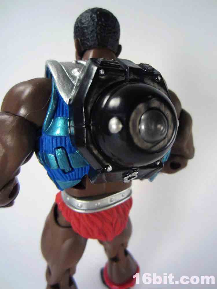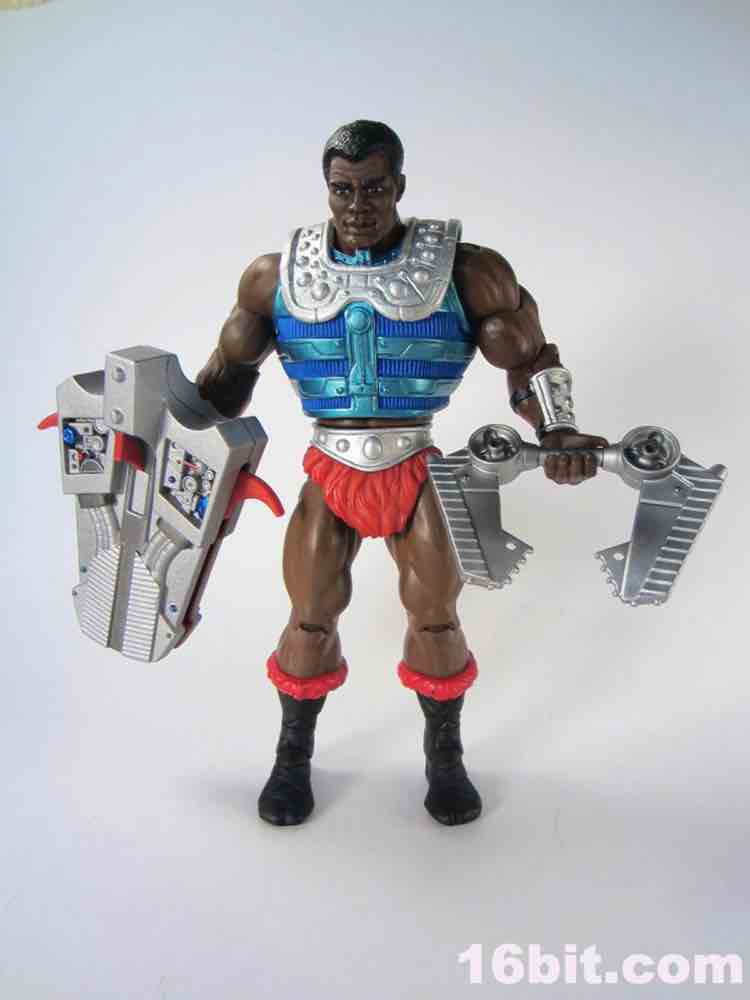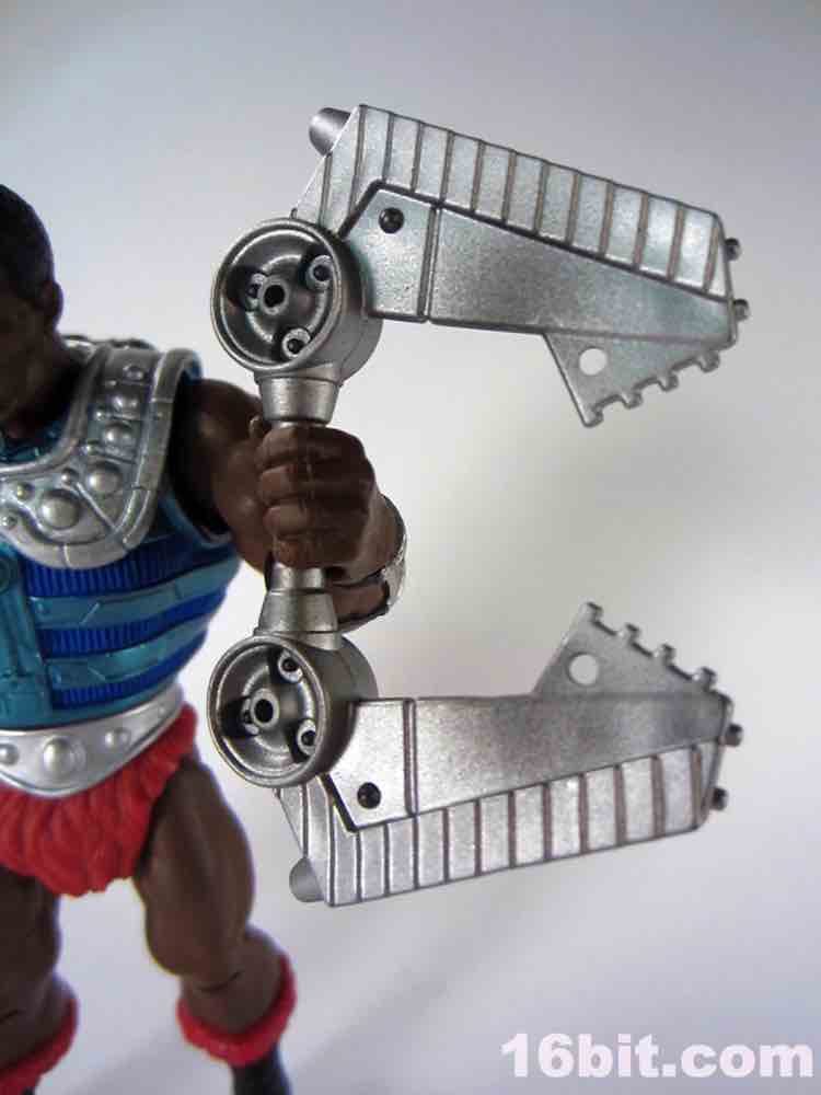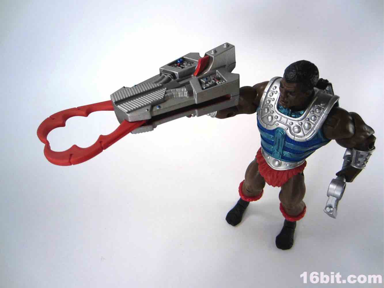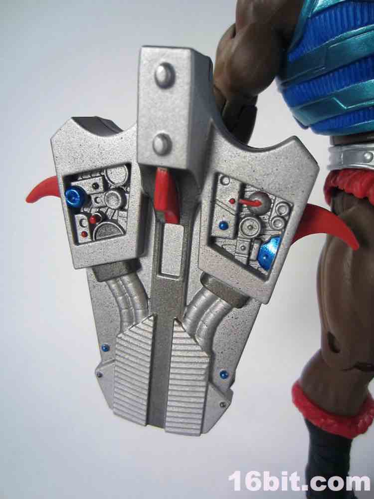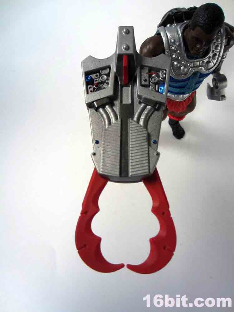 The 7-inch tall makes the most out of the existing buck, with new armor (vaguely Fisto-esque), a new head, and new weapons. Like Jitsu, his face sculpt is a little more intense and detailed than other figures in the line with deco that's just as good as the best of the best this line has to offer. For figure after figure, Mattel and the Four Horsemen have been knocking the figures out of the park with fairly clean paint jobs. The silver and metallic blue armor are offset by a few splashes of red, which work very nicely. If you collect this line you no doubt know that the figures are quite poseable and sport about 20 joints per figure, give or take depending on how accessories get in the way. Clamp Champ has an ab crunch joint that's largely obstructed by his armor.