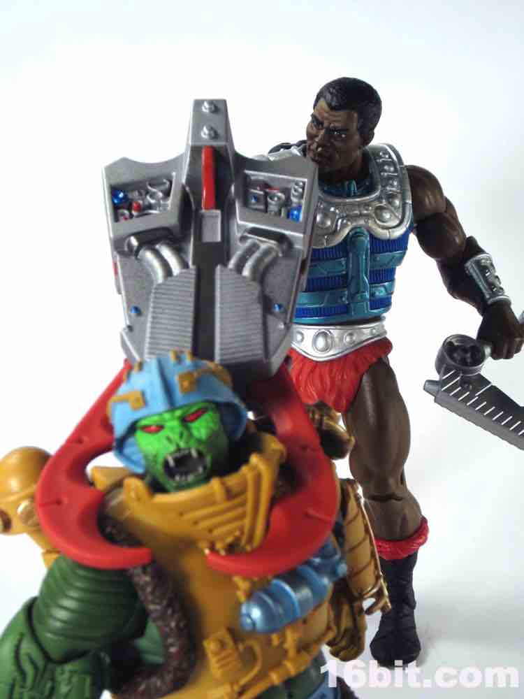 With most toy reviews, I shoot it in the package, crack it open, write the review, and finish the shoot. With Clamp Champ I shot everything in July and didn't write it up until much later - a mistake on my part, this is a great figure and odds are any chance you had to get one at the original issue price is long gone. I loved the figure, but the character is basically a blank slate to me - I didn't have the original toy and he wasn't in the cartoons. All I really knew him as was a late-run filler figure with a large fan following who, as it turns out, replaces Man-At-Arms in the future of Eternia.