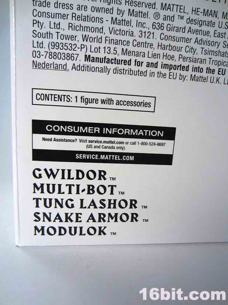 This figure's accessories make it - the giant snake-grabbin' clamp is not spring loaded, but rather swings out and can be posed to your liking. The smaller weapon fits comfortably in his hand, and as you've no doubt assumed there are some gravity issues. You may wish to keep a doll stand nearby to keep him from toppling over, or just be careful about finding his sweet spot so he can stand up to Eternian invaders. Rather than just mold the clamp in silver, Mattel had it painted and that brings out a ton of detail. A few buttons and rivets are also decorated, making this one of the best-looking accessories in the line. I can only really complain about the fact that it isn't spring-loaded - it'd be a lot more fun if it was. As it is, it just looks like the best figure accessory in this line.