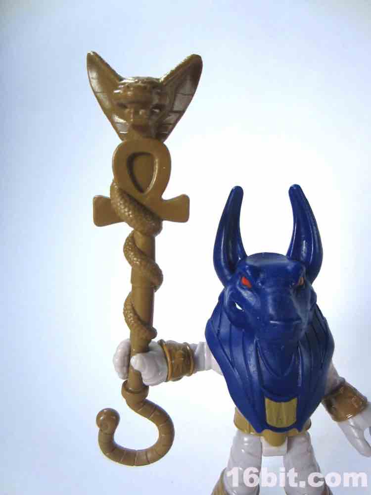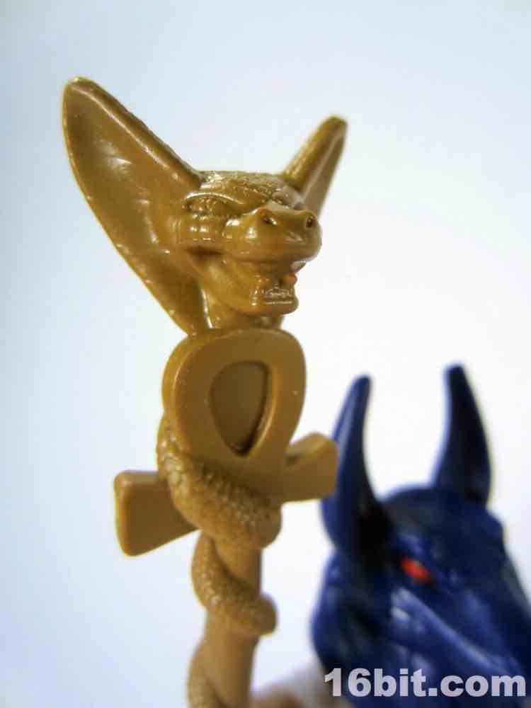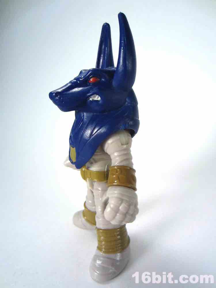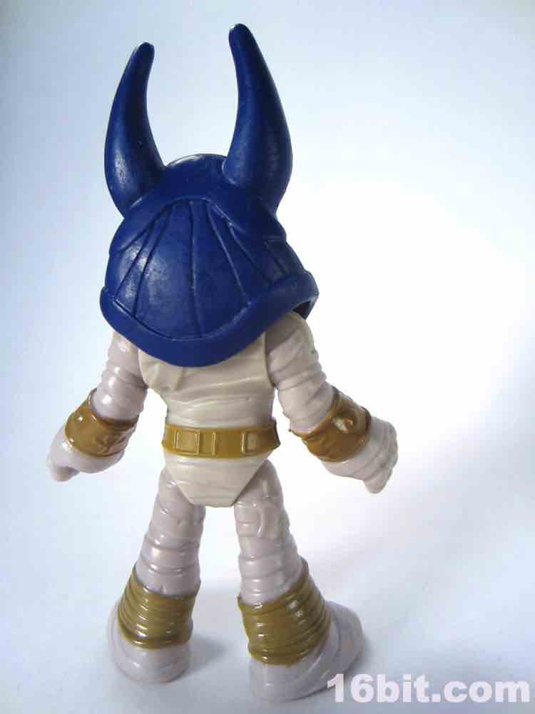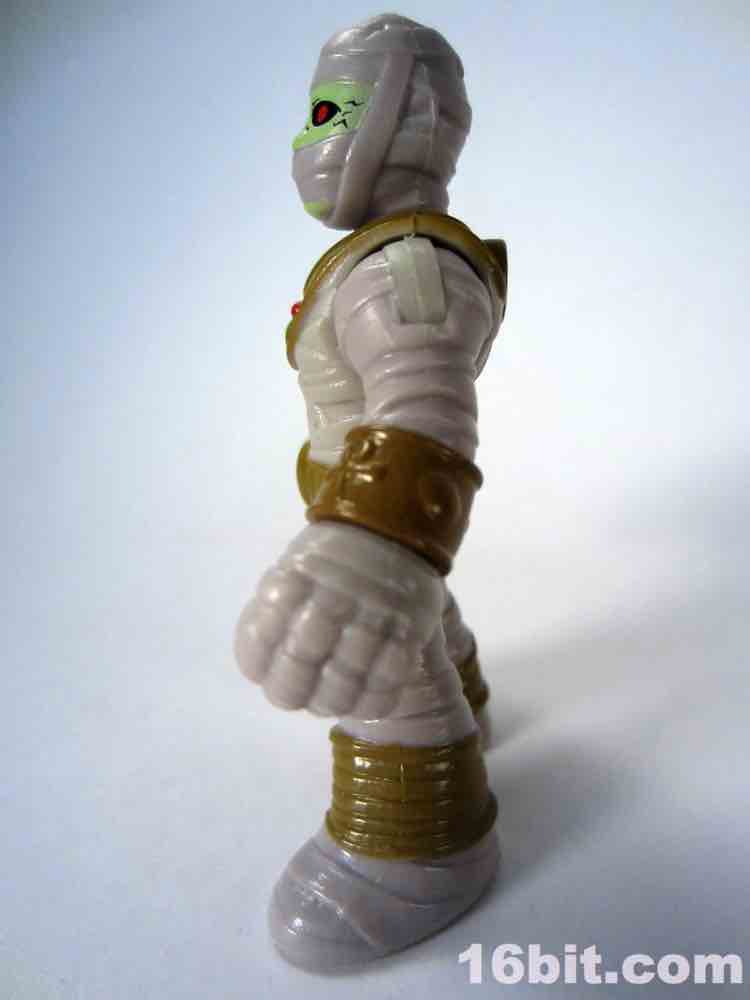 The 3-inch figure basically checks a box of the things one might expect preschool-age boys would recognize - other figures in the set include soccer players, aliens, and not-James Bond... which I have to assume means this line is more popular in Europe. As I write this I'm seeing many James Bond movies for the first time and I think that there's a lot of people under 35-40 in the same boat, but I digress. Mummy! The sculpted mask has a jackal head with a great clenched face that seems like it would be right at home in the 1980s TMNT toy line. There are white teeth, red eyes, and a dab of brown on the front. The sculpting is worthy of mention, but that brown paint is thick and glossy, robbing you of the work put into its design - several rivets are drowned out by the decoration.