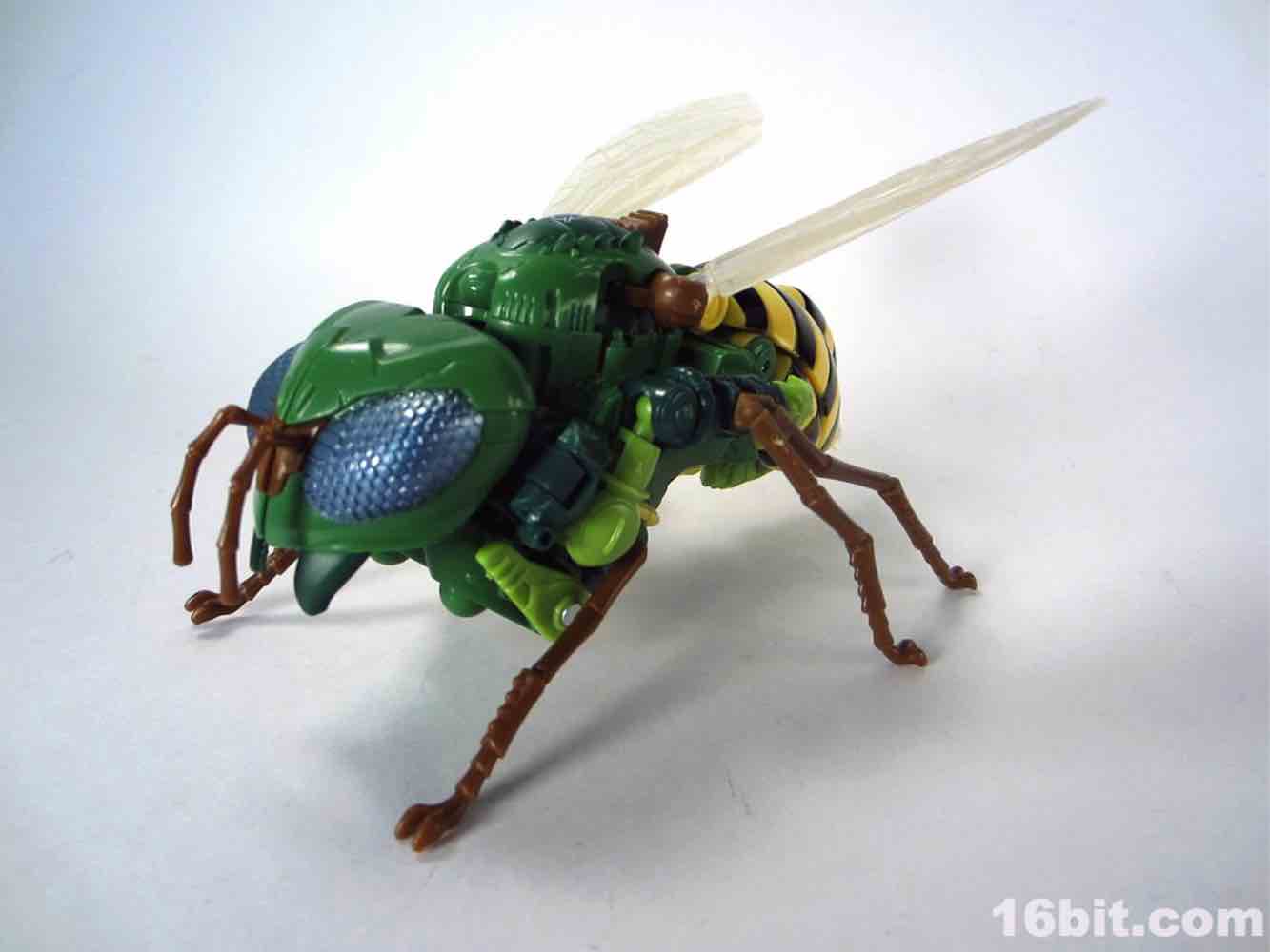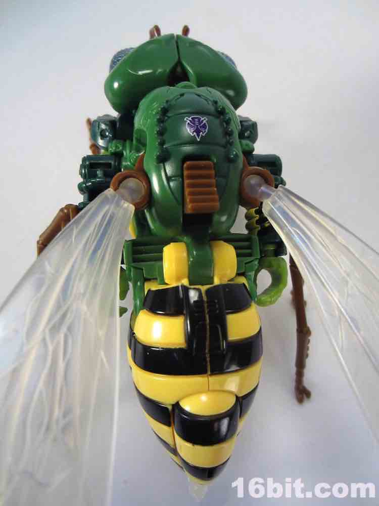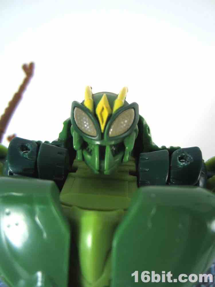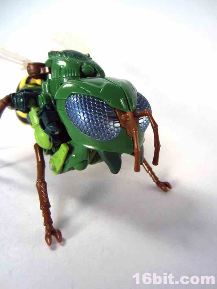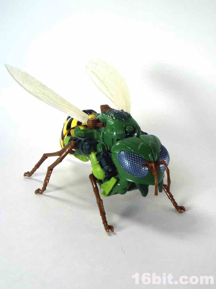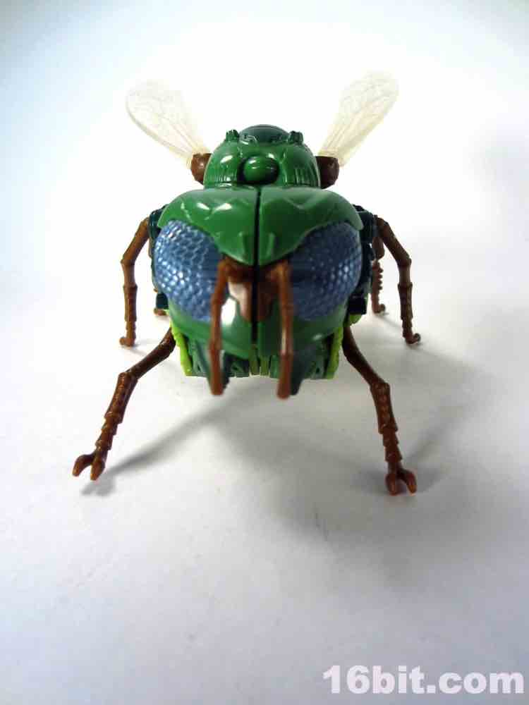 The 5-inch tall Predacon warrior has about 13 meaningful points of articulation as a robot, plus an awesome and simple switch which lets you move his wings around. It works well - everything about this figure works well. Getting him into .shtml mode is a little tricky but all of the panels and tabs align with minimal frustration. Other than moving his bug legs and wings, the bug mode doesn't do much but hey - bug mode! We don't get those very often. This toy's only real shortcoming is a lack of deco on the head, which I'm sure some third-party person or customizer will fix. Or Japan, at four times the price.