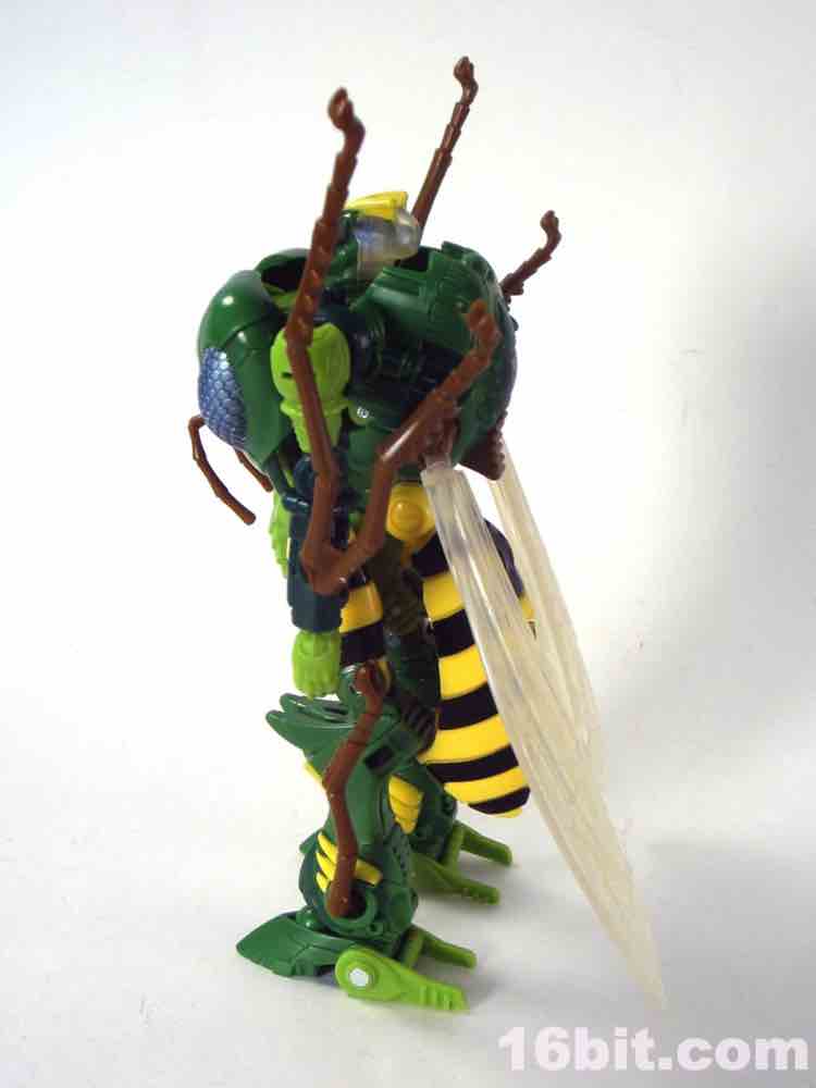 The whole assortment was down to ten bones a figure when I found mine in December and is well, well worth it. Considering the original Waspinator was $10 in 1996 with much less deco, much less articulation, and a less convincing beast mode, this may well be one of Hasbro's finest make-goods ever. A lot of work went in to making this a figure that I can't say much about, because everything basically looks correct. It's Waspinator! It's basically what you remember, only better, and cheaper. Those of you with customization skills are going to love this toy and never want for a better one - the rest of us will just enjoy a well-made, nicely-priced, all-around fun toy from one of the most beloved robot TV shows of the 1990s.