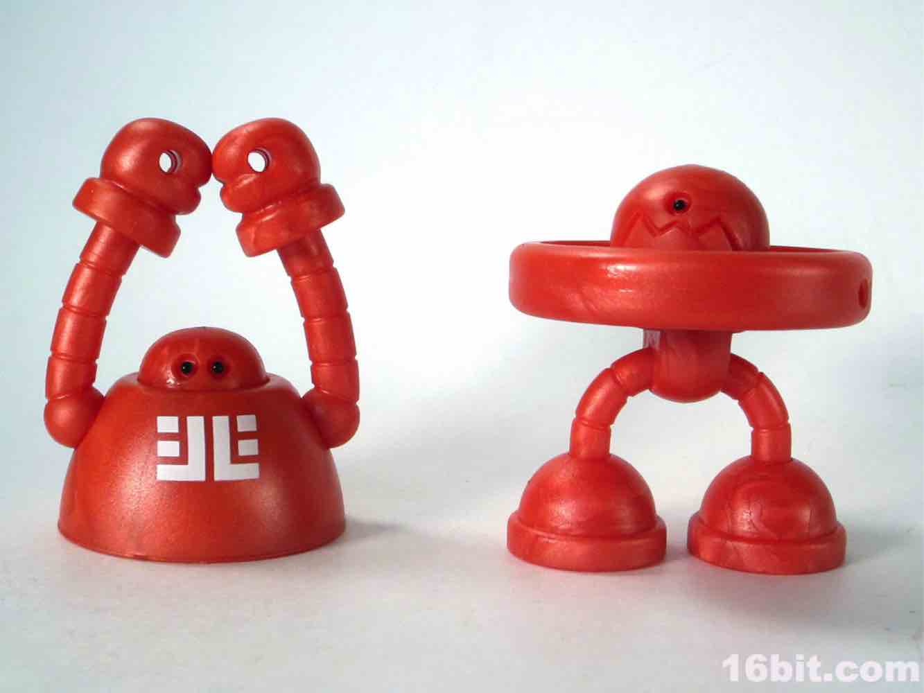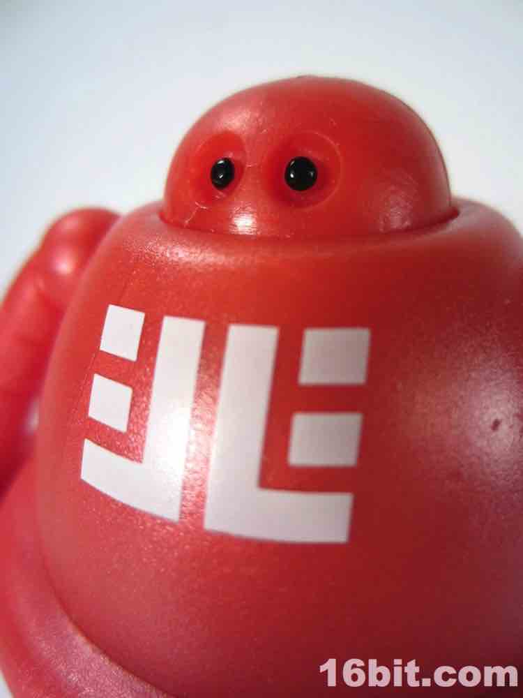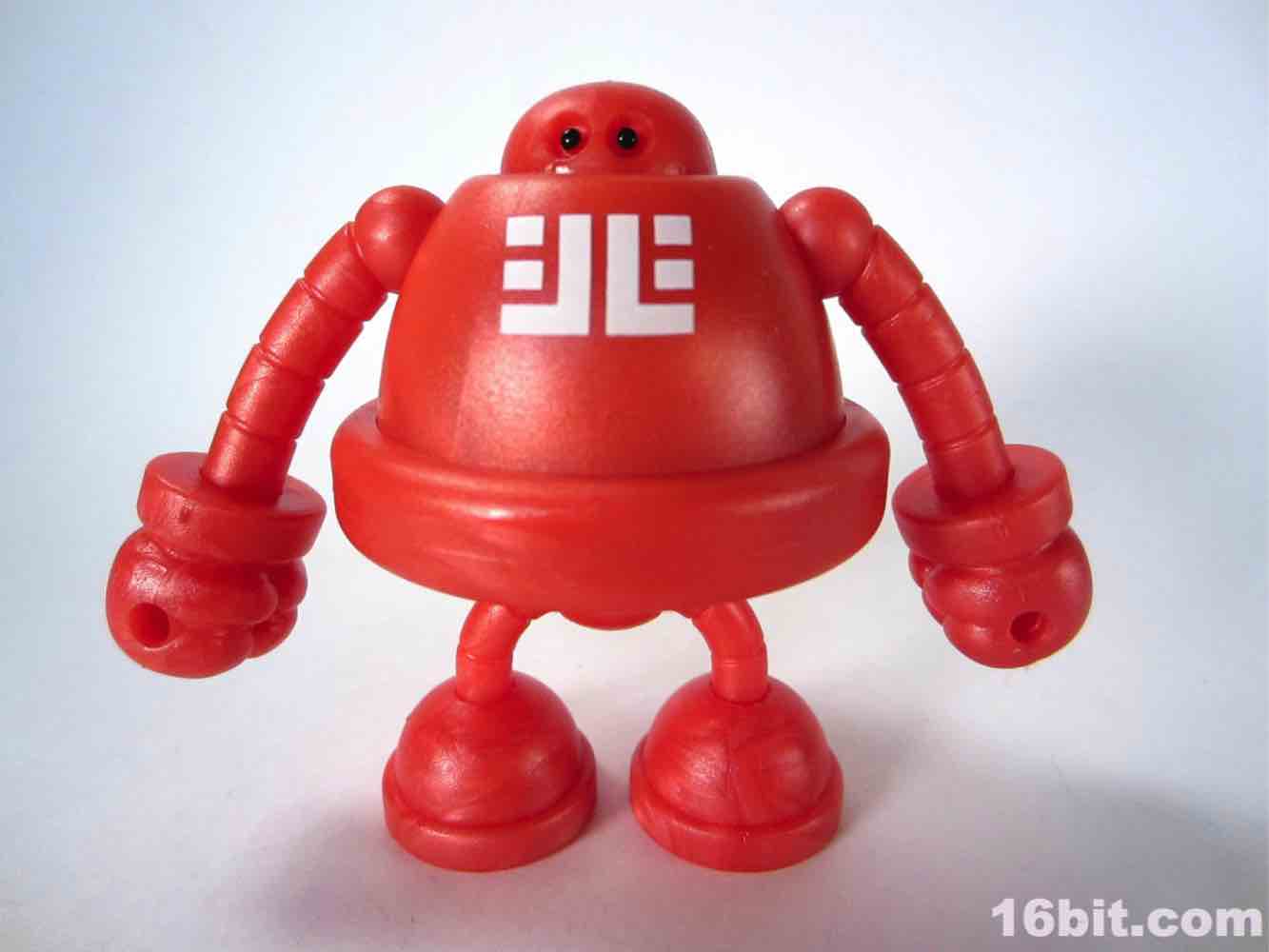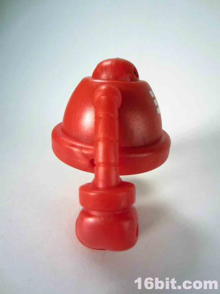 The big, boxing glove-like hands are likely to make this figure a gem for anyone who enjoys swapping around parts. Mixing and matching with other Gobon figures is always fun, particularly when Mr. Doughty cranks out a festive, candylike color such as this. (A year ago, we got a swell blue Gendrone Legion Gobon.) I prefer the default configuration of this one, mostly because I find the black dot eyes to be less compelling on the alternate head. The blue Gobon's red eye had a black outline, plus the added panel lines on the arms and mouth gave him some "oomph." It's not that this figure lacks oomph - but it could stand for a little something more to make it stand out. Well, perhaps that's silly or short-sighted of me to say - the pearlescent red is sure to pop on any toy shelf, and the design remains charming several years after its first release.