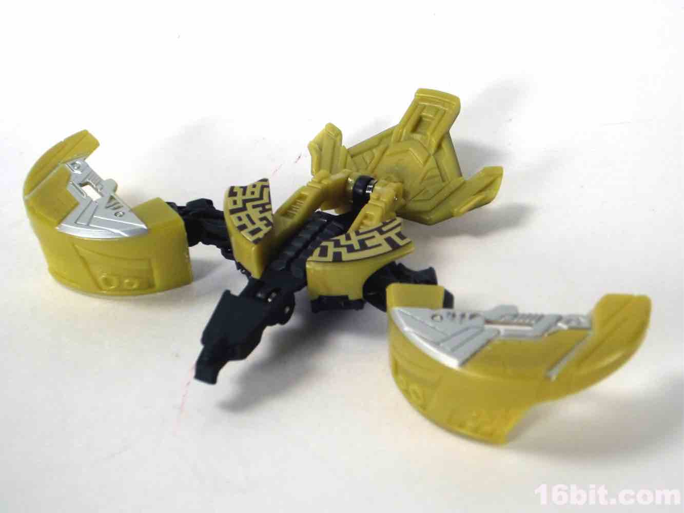 While Hasbro seems to frequently want to do Soundblaster repaints of Soundwave, they don't always make it out in the USA. This one did, and with the added bonus of Buzzsaw it's a worthwhile repaint. Well, to me anyway - you don't have to twist my arm too much to buy a black repaint of something. Buzzsaw transforms quickly and easily from a gold data disc to an adequate little robot condor, minus the guns that plug into his back on the original toy. The Masterpiece Buzzsaw is a significantly better figure for collectors, but this particular version is fun to play with. And, arguably, is not for kids.
