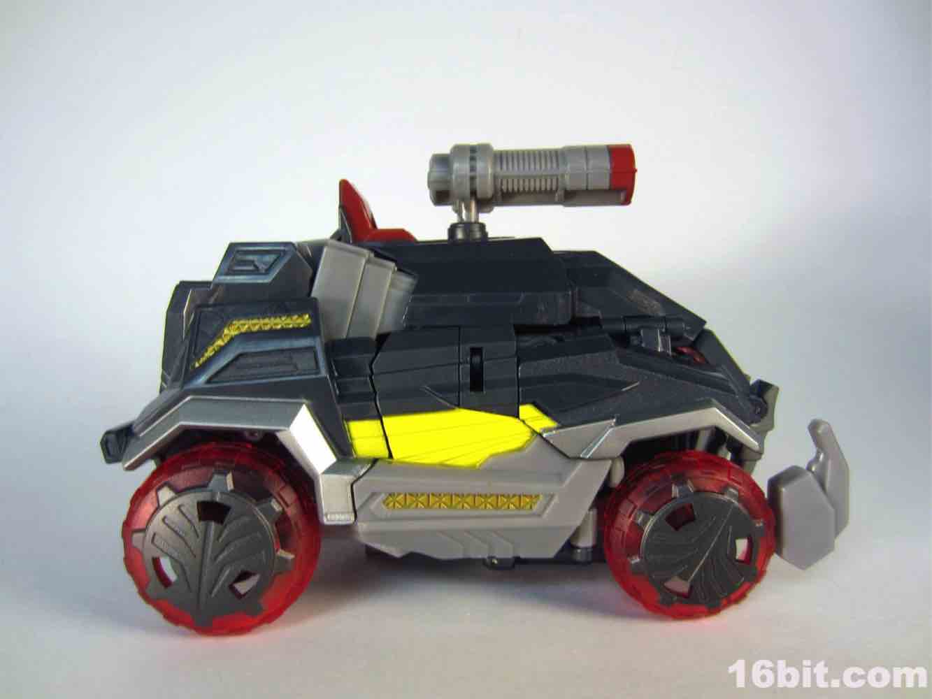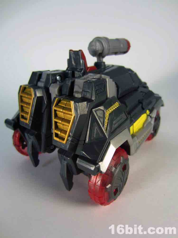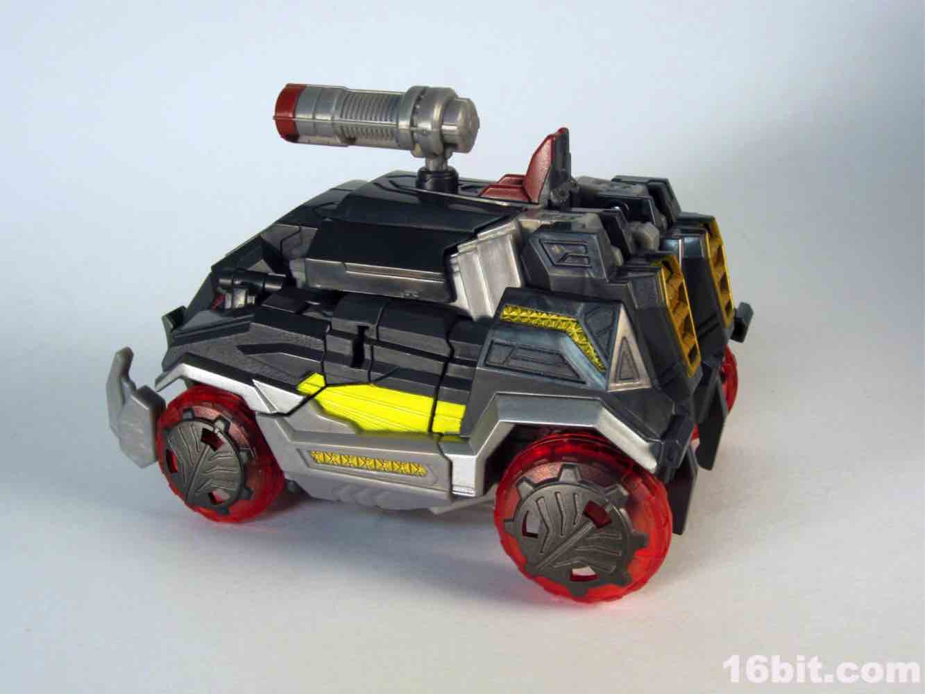 The vehicle mode decent, more or less fun but by no means amazing. The little "seat" on top has no actual function, and the rolling wheels roll well enough. The shape of this armored craft is pretty dang boxy, so it's not like it's particularly exciting unto itself - it's a thing that kind of looks like a van with spikes. You'll want to display this one in robot mode.