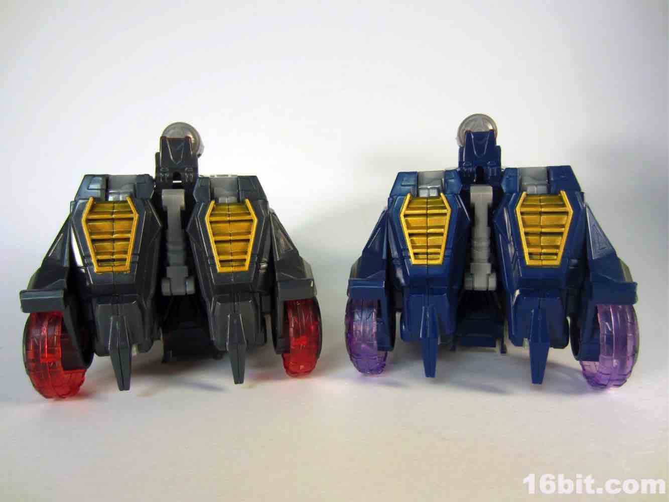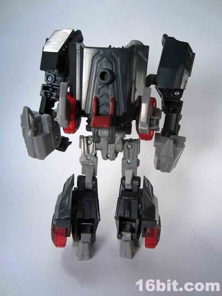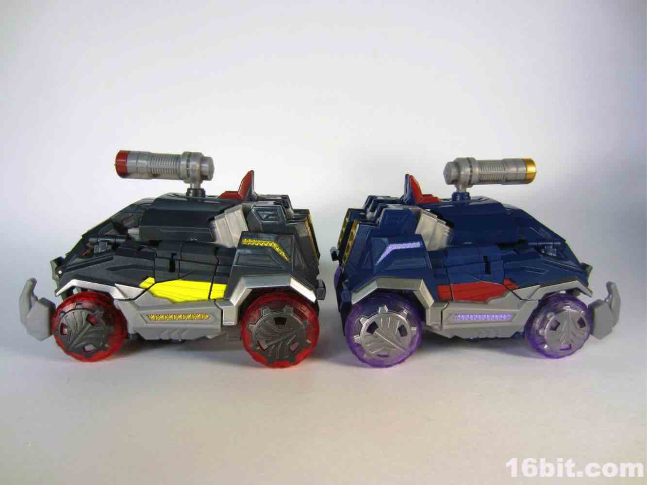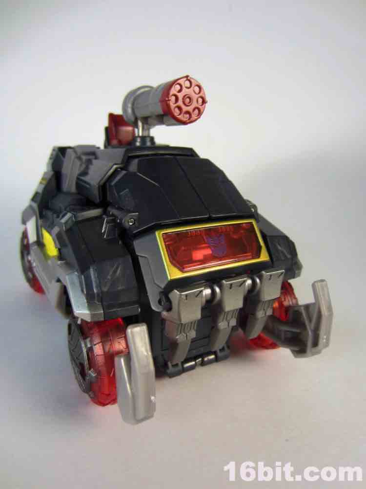 The vehicle mode decent, more or less fun but by no means amazing. The little "seat" on top has no actual function, and the rolling wheels roll well enough. The shape of this armored craft is pretty dang boxy, so it's not like it's particularly exciting unto itself - it's a thing that kind of looks like a van with spikes. You'll want to display this one in robot mode.